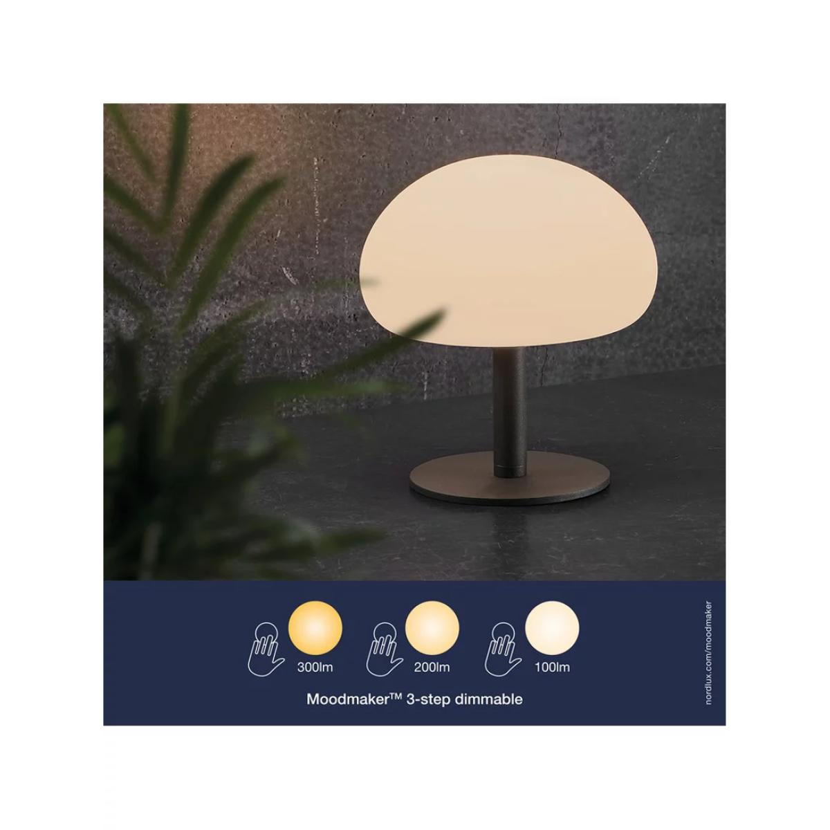 The simple design and soft shape make the Nordlux Sponge rechargeable light an incredibly elegant and is suitable for inside and outside the home. With the built-in battery, Sponge can be placed and moved as you like and the brightness of the light can be adjusted to three levels. The battery has a durability of up to five hours at full power and even longer if the light is turned down to a low level. The battery is easily charged via the USB cable which is included.