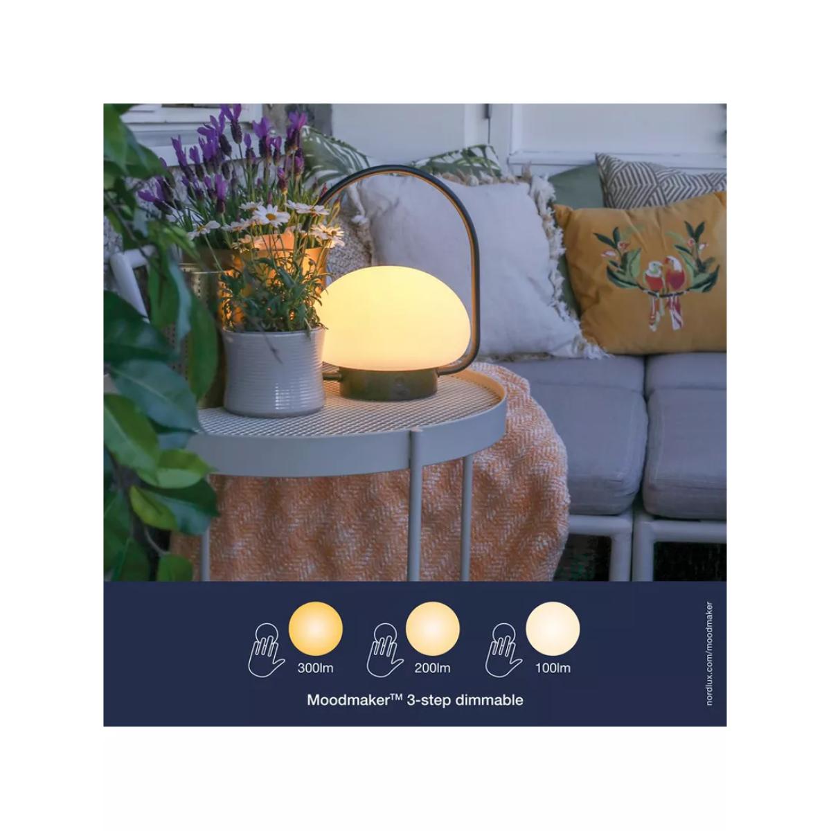 The simple design and soft shape make the Nordlux Sponge rechargeable light an incredibly elegant and is suitable for inside and outside the home. There are many opportunities with this beautiful portable lamp. Sponge To Go invites you to pick it up and take it with you anywhere you like. Use it outside on the terrace, take it with you on a picnic or inside and create cosy lighting in the living room. Sponge is made of hard plastic and is durable against wind and water. With the built-in battery, Sponge can be placed and moved as you like and the brightness of the light can be adjusted to three levels. The battery has a durability of up to five hours at full power and even longer if the light is turned down to a low level. The battery is easily charged via the USB cable which is included.