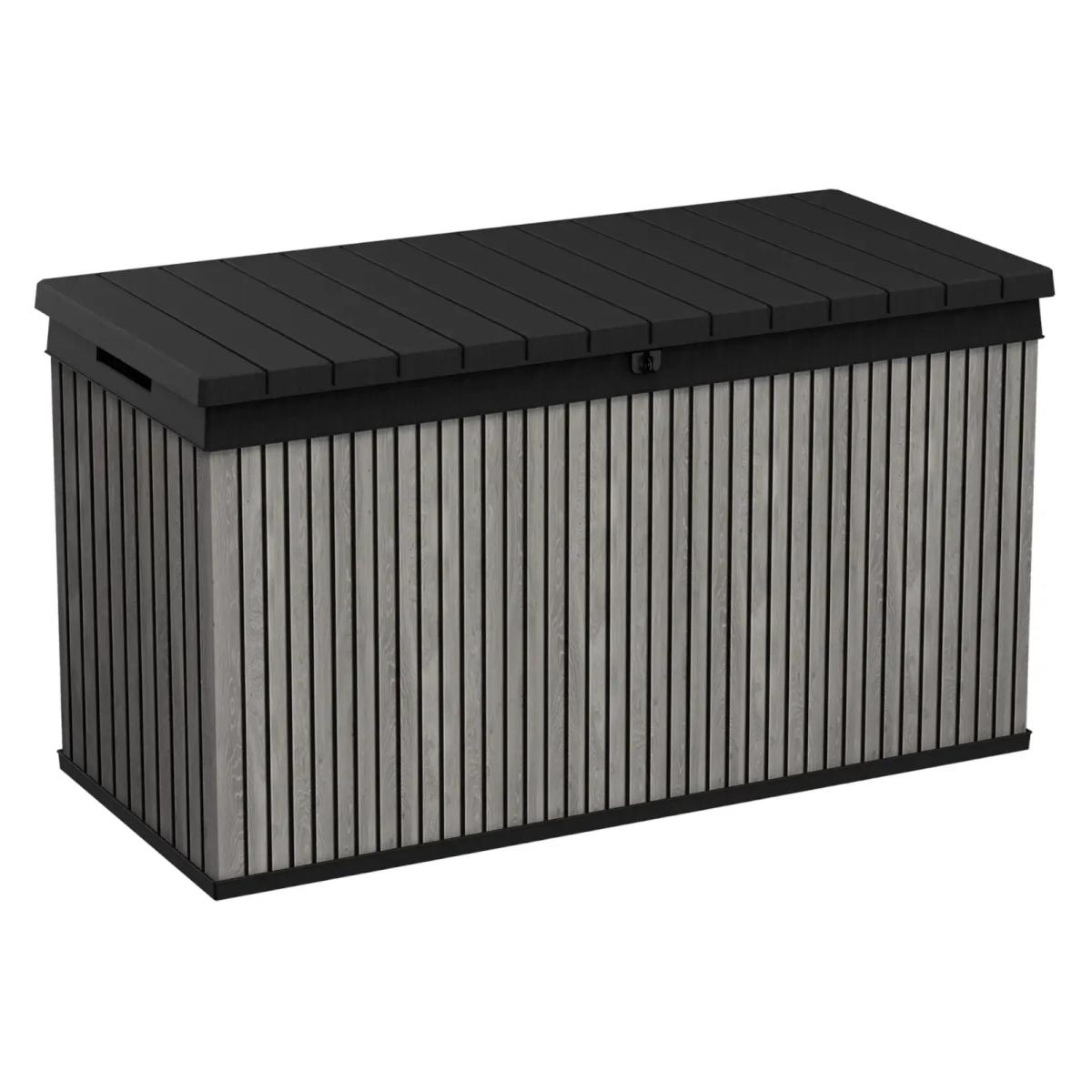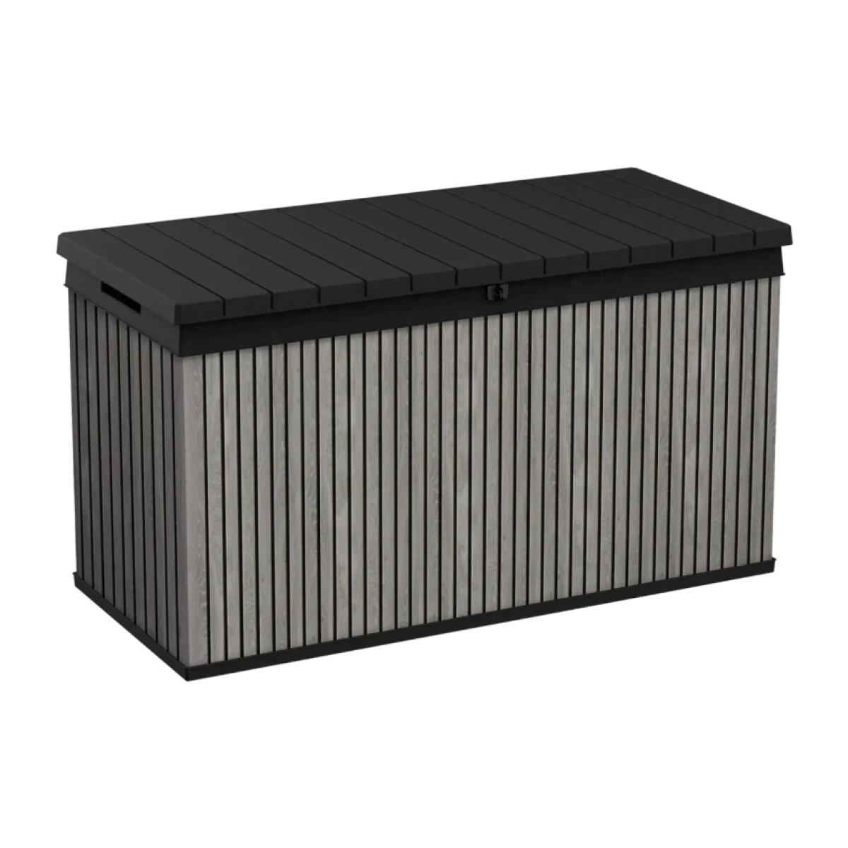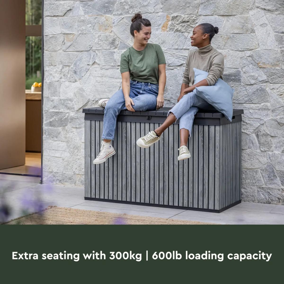 Upgrade your outdoor space with the Norfolk Leisure 175 Gallon Storage Box - Venetian Grey. Designed to meet modern lifestyle needs, this stylish and practical storage solution blends seamlessly into any garden, patio, or entertaining area while offering ample space to keep your essentials organised. Whether it’s garden tools, cushions, or outdoor accessories, this generously sized box keeps everything protected and neatly tucked away. Crafted from durable, weather-resistant resin, it is UV-protected, maintenance-free, and features a lockable lid for added peace of mind. Two built-in hydraulic pistons ensure smooth and quiet opening and closing, while the reinforced lid doubles as a bench seat for two adults – comfortably supporting up to 300kg (600 lbs). Features: Durable, weather-resistant and UV-protected resin construction Lockable lid for added security (lock not included) Hydraulic pistons for easy opening and safe closing Lid supports up to 300kg – doubles as bench seating for two Contemporary Venetian Grey finish to complement modern outdoor spaces Ideal for storing cushions, garden tools, BBQ accessories, and more Maintenance-free – no rust, peeling, or fading Dimensions Width: 142.5cm Depth: 65.3cm Height: 89.5cm 175-gallon (660. L) storage capacity All screens vary in colour reproduction and whilst every effort has been made to display the colour as accurately as possible it is for guidance only
