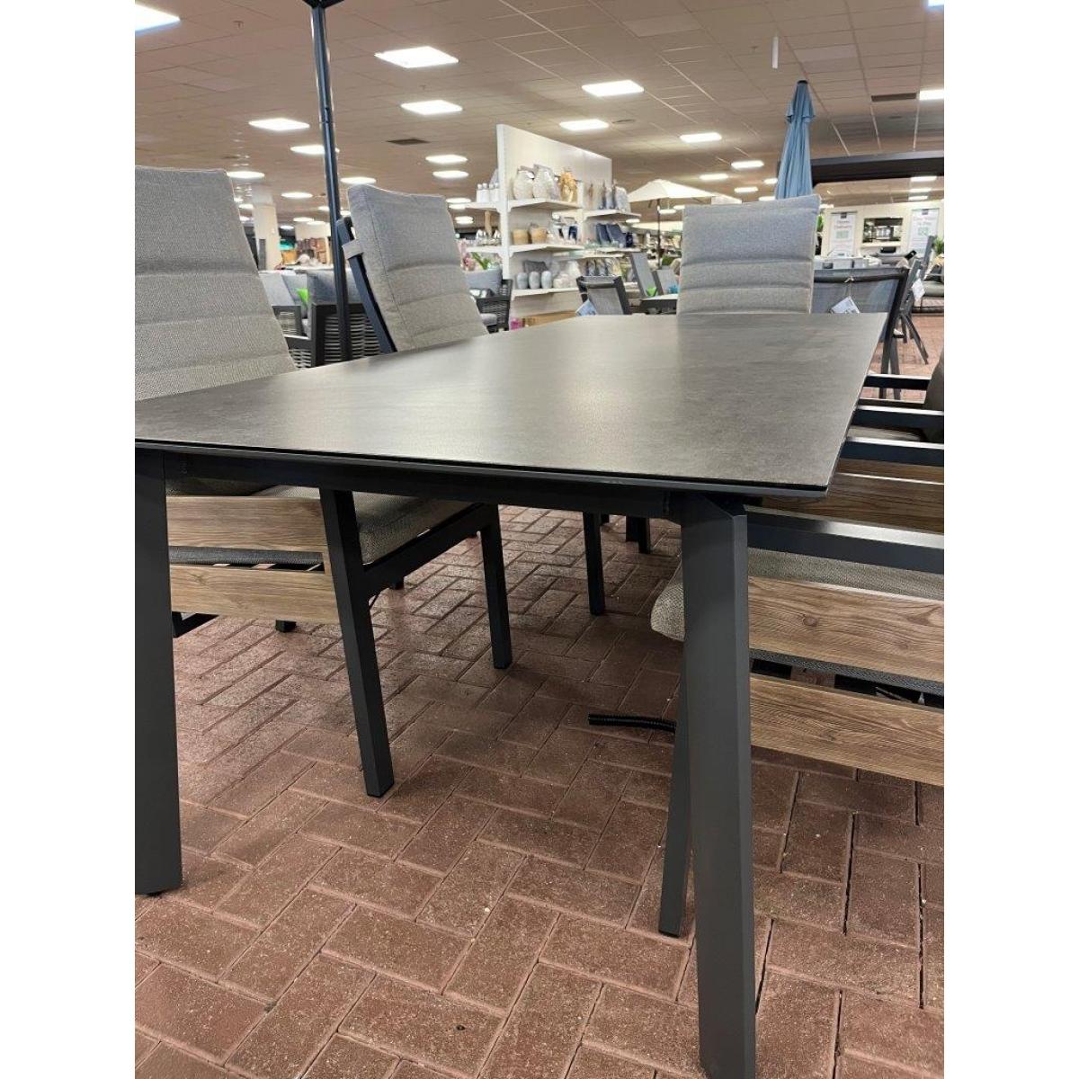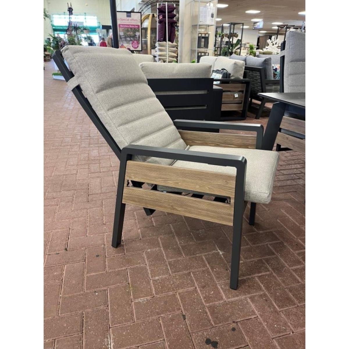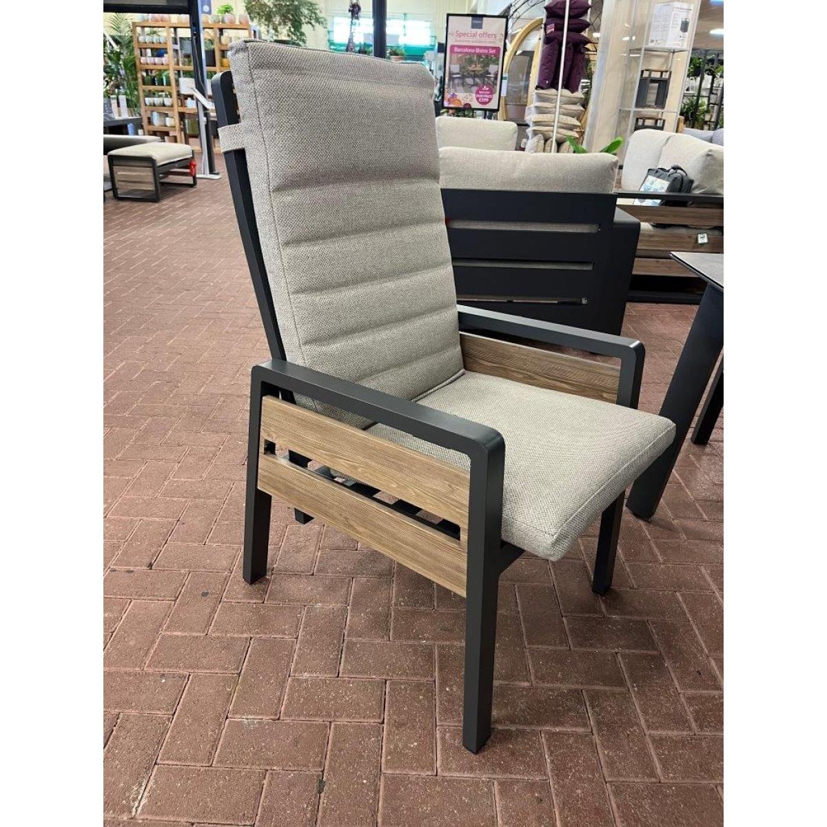 Bring a touch of luxury to your outdoor living with the Norfolk Leisure Antigua 6 Seat Reclining Dining Set. Designed for both comfort and style, this elegant set is perfect for al fresco dining, garden parties, or simply relaxing under the sun. Crafted with premium weather-resistant materials, the Antigua set features six generously padded reclining chairs and a spacious dining table with a sleek, contemporary finish. Each chair reclines effortlessly, allowing you to switch from dining to lounging in seconds—ideal for those long, lazy afternoons. Set Includes: 1 x Dining Table 6 x Reclining Dining Chairs 1 x Cover Key Features: 6 Reclining Chairs: Ergonomically designed with adjustable positions for ultimate comfort. Spacious Dining Table: Perfectly sized for entertaining, with a durable, easy-to-clean surface. All-Weather Durability: Made with high-quality rust-free aluminum frames for year-round use. Low Maintenance: Easy to wipe clean and built to withstand the elements. 2 Year Guarantee. Set includes FREE cover. Dimensions: Table: Height: 75cm Width: 80cm Length: 140cm Chairs: Height: 71cm Width: 102cm Depth 84cm Please note, all screens vary in colour reproduction and whilst every effort has been made to display the colour as accurately as possible it is for guidance only. Scatter cushions and accessories pictured are for demonstration purposes only and are not included.