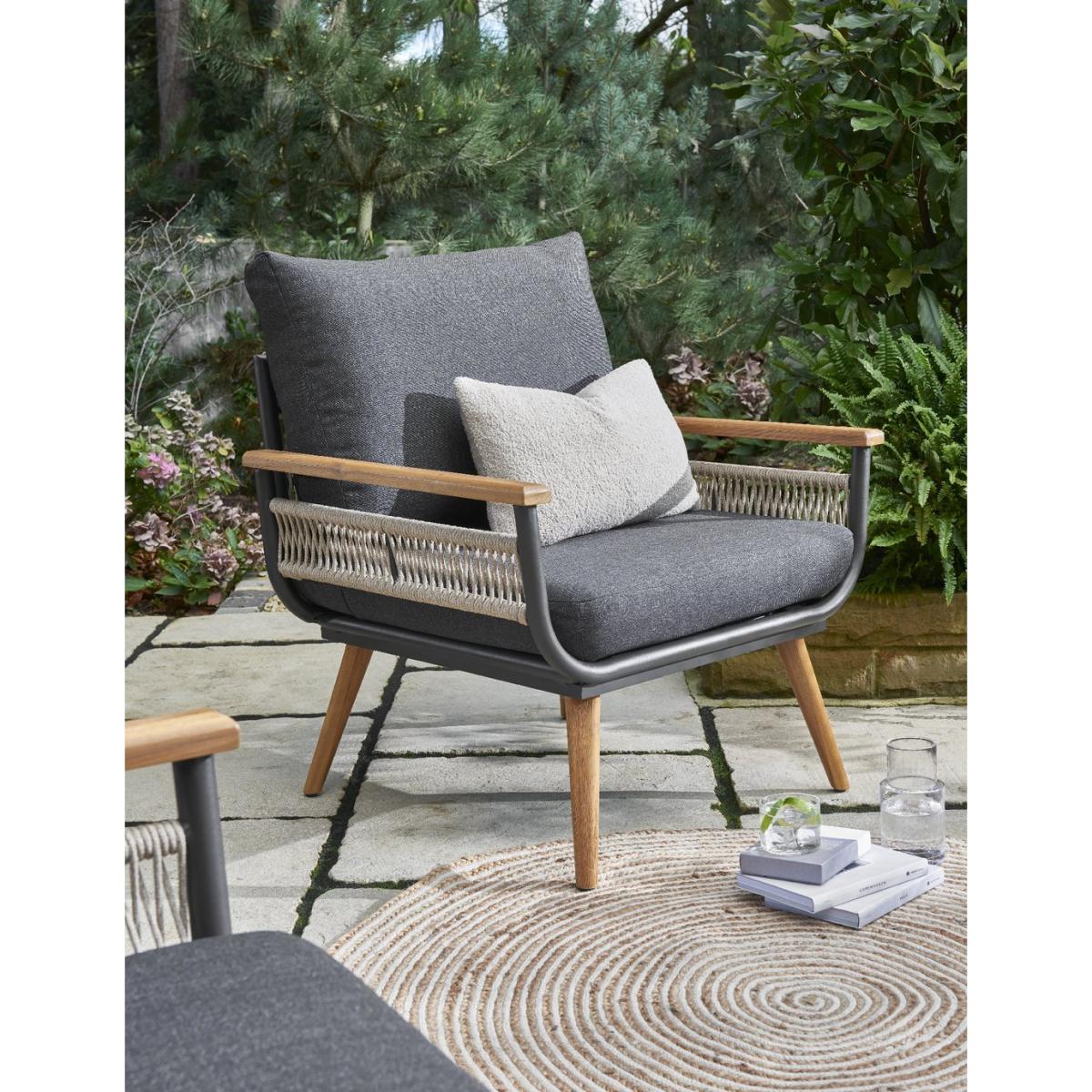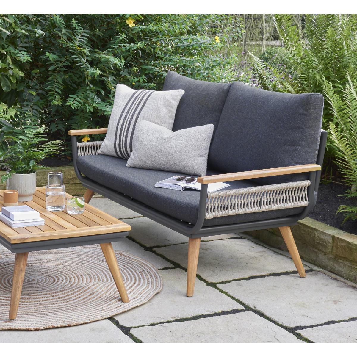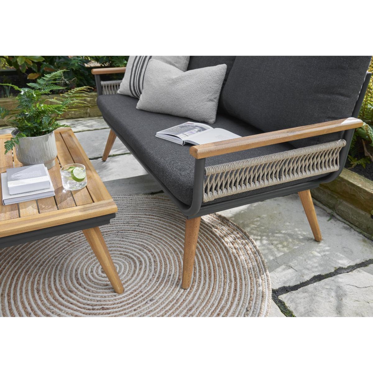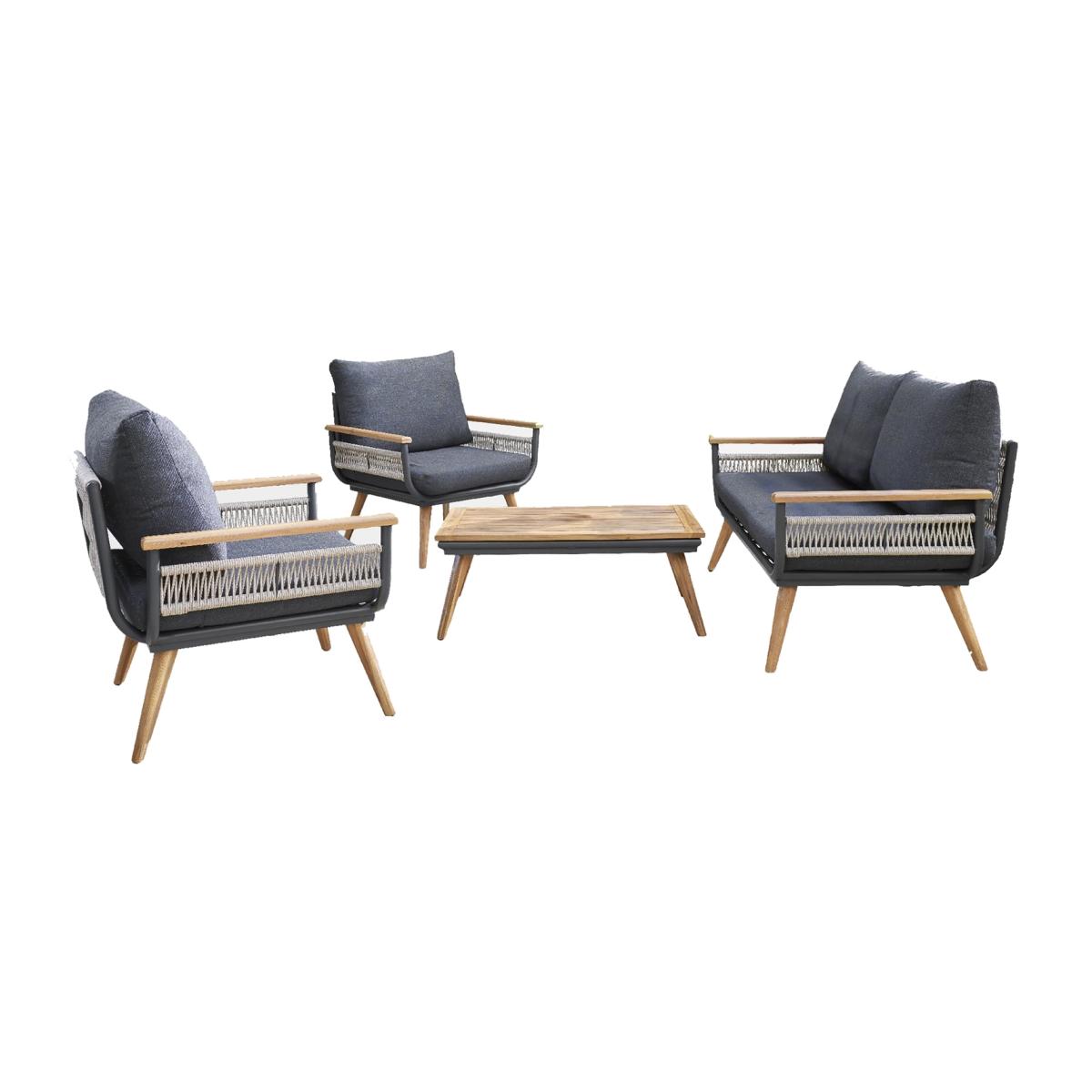 Introducing the Norfolk Collection Kimora Sofa Set – a stylish and durable outdoor furniture solution and part of the Norfolk Leisure Kimora collection. This model comes in a lounge configuration complete with a two seat sofa, two armchairs and a stylish coffee table to match. The set contains genuine Acacia wood in the armrests and legs which are 100% FSC grade sustainably sourced and paired beautifully with comfy grey cushions, making these set stand out above the rest. Parasol not included. Includes 7 cushions. General features: Set seats 4 people. Set made from aluminium and acacia wood. Cover or store inside in winter months to prolong life of the products. Total weight 42kg. Garden table features: Table size: H34, W50, L90cm. Chair features: Chair seat and back made from aluminium. Size H70, W78, D80cm. Sofa features: Sofa size H70, W78. D145cm. Bench features: Bench size H70, W145, D78cm. Cushion features: Polyester and Grey cushions. Removable covers. Washable covers. Remove cushions when not in use and store inside. Packaging information: Package 1 size H48, W145, D78cm. Package 1 weight 23kg. Package 2 size H57, W80, D81cm. Package 2 weight 20kg. General Information: Packed flat - 2 people required. FSC certified meaning the materials used for this product are responsibly sourced. Manufacturer's 3 year guarantee.
