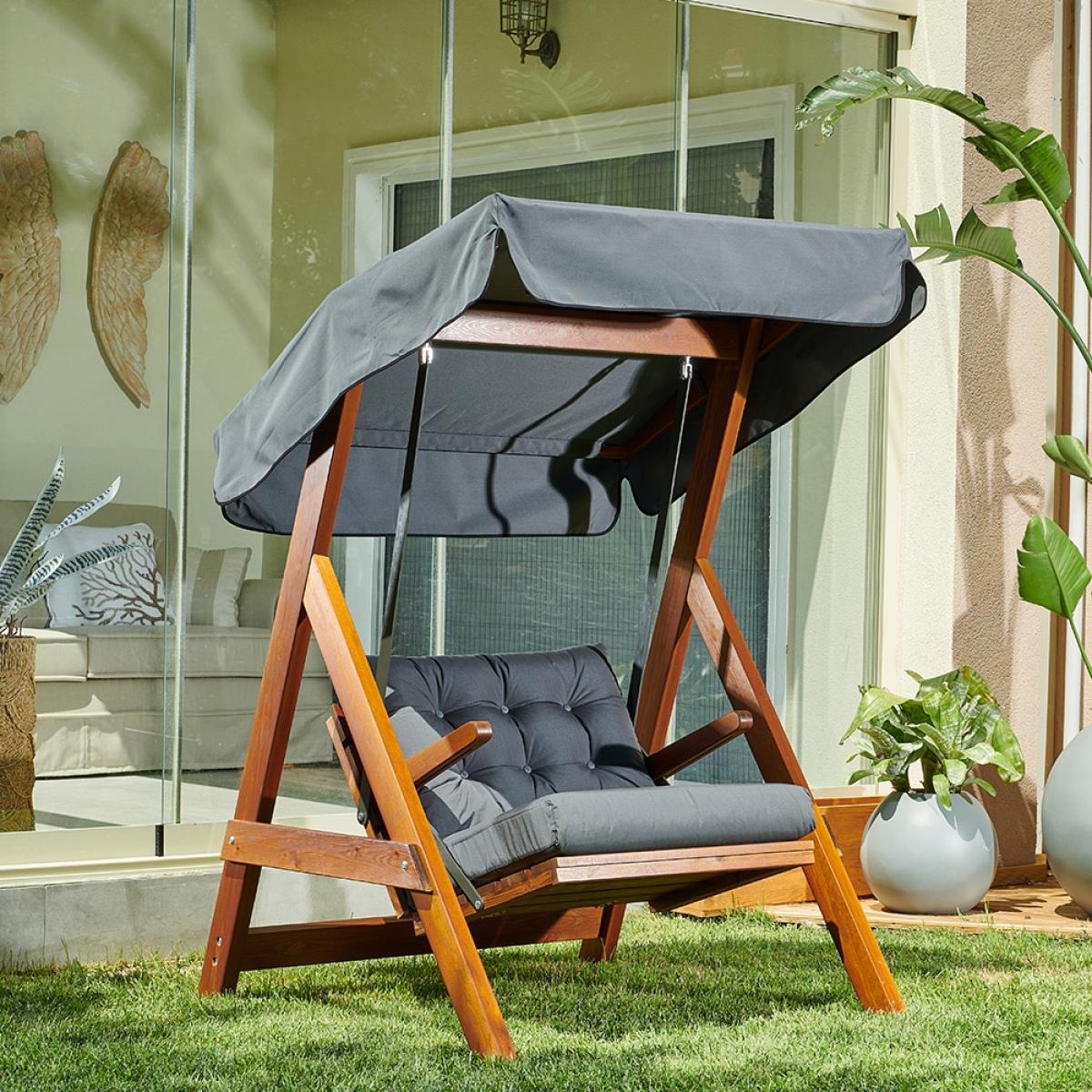 Need a break from the hustle and bustle? Want to slow things down and enjoy some peace and quiet? You need a swing seat! Available in 2 sizes; rock those woes away with the Norfolk Leisure Sandringham Garden Swing Chair! Covered with UV, moisture, dirt and stain resistant fabric; the soft touch cushions are practical, stylish and most importantly. Oh-so-comfortable! The matching canopy offers shelter from the sun while you enjoy those gentle swaying motions. Position yours out on the patio or decking and enjoy the view of your garden. There really isn't anything more relaxing!Styled in a deep grey with a carefully crafted European Pine frame, you won't be able to resist walking past without having a swing!.