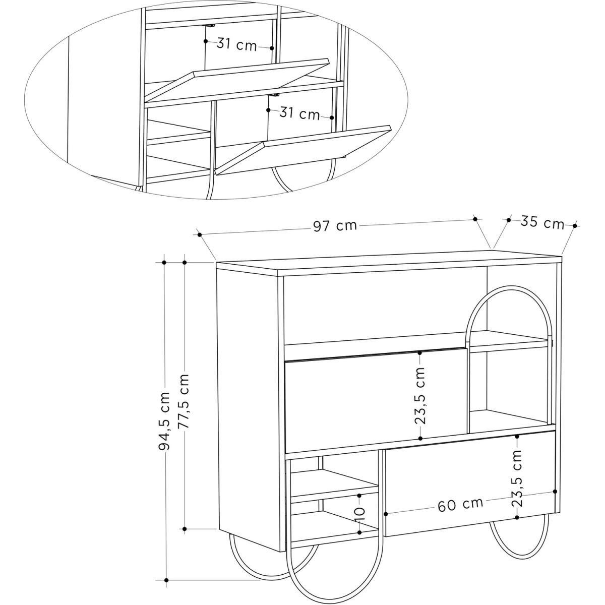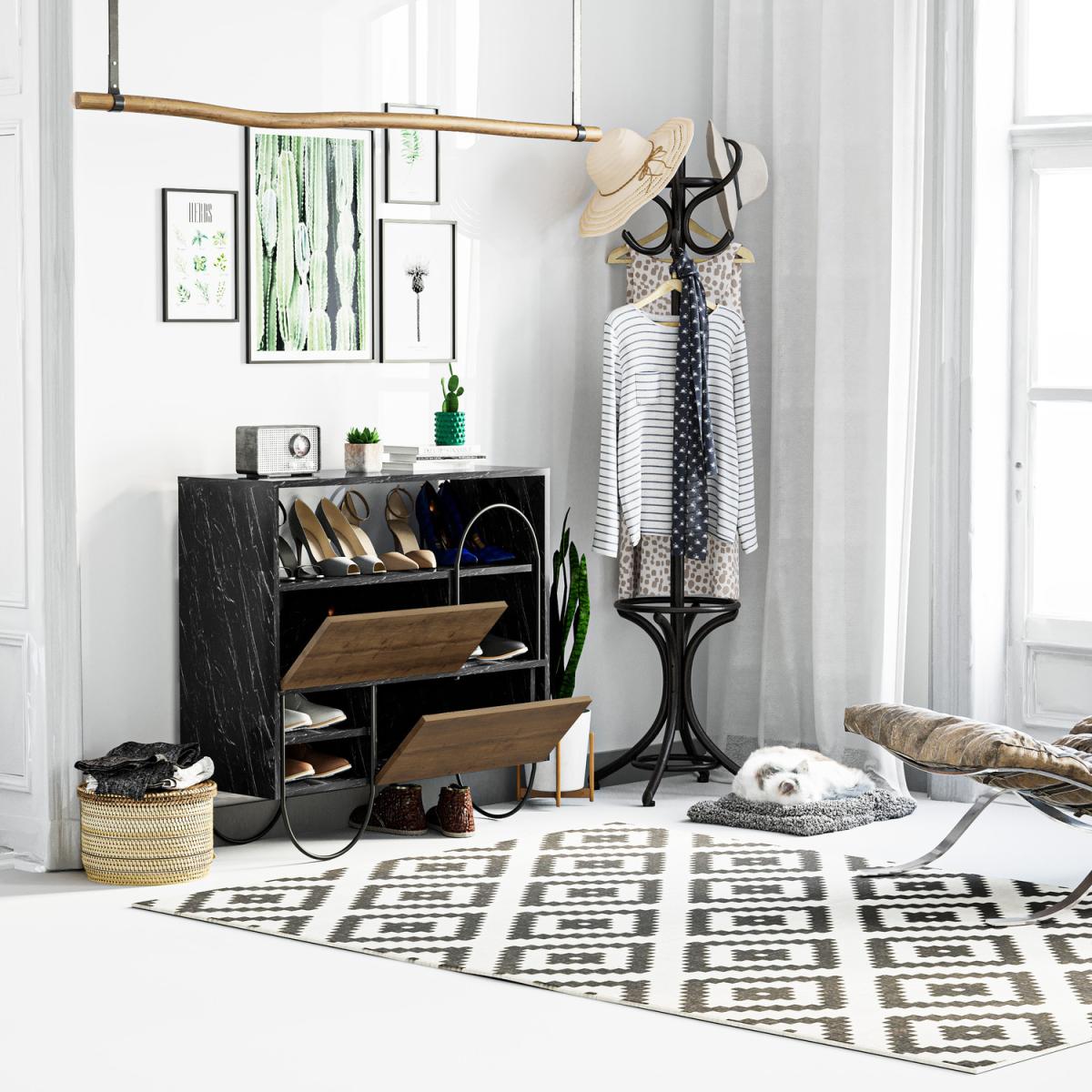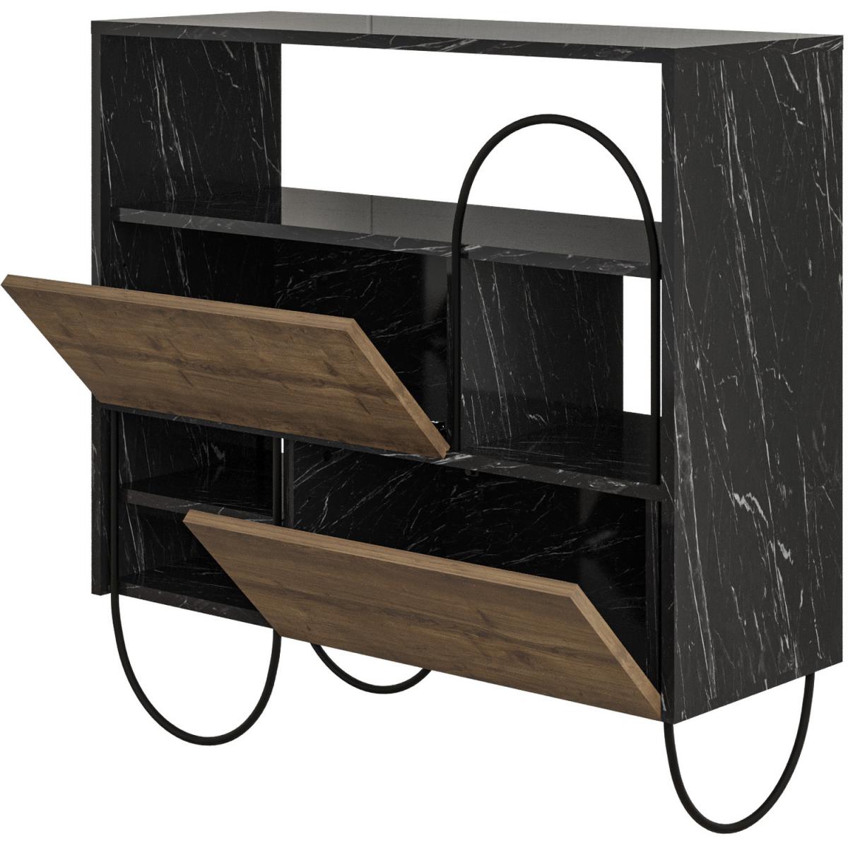 Norfolk Shoe Cabinet - Black Marble Effect - Dark Oak Effect / Chipboard