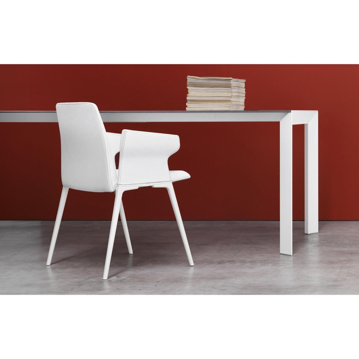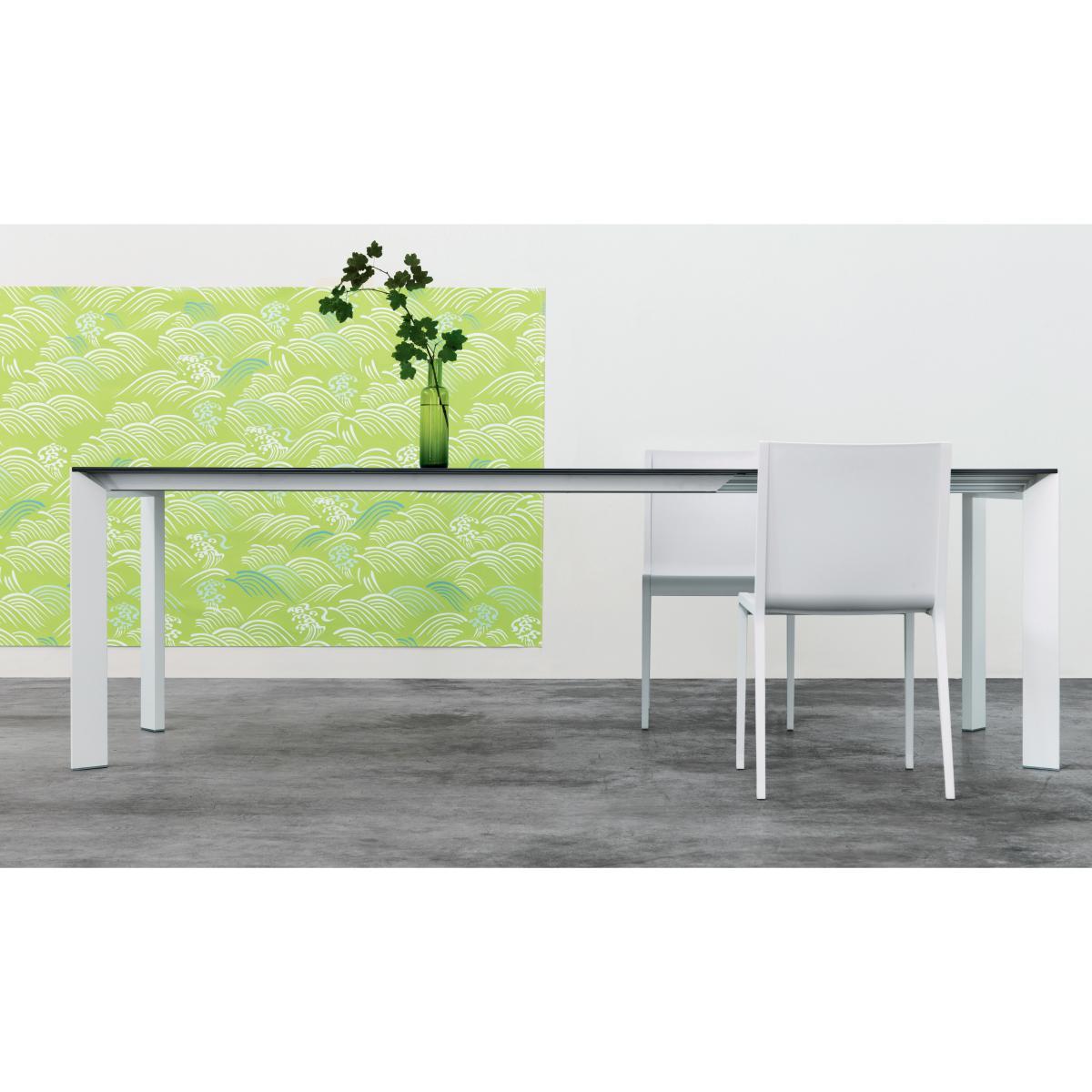 Nori is a modern design table which can either be fixed or extended with multiple possibilities of finishes and colours. The legs are available either painted or in anodised aluminum, creating sharp lines to really create an impact in your home and a great talking point for guests. The tabletop extremely thin and lightweight, but still very resistant, thanks to the high quality materials used. The table will work in all types of décor and can even become a desk design with the insertion of a cable hole. The colour choices mean that no matter what style your home is, you can find the perfect table to suit, and the modern table design will fit into any room in the house. The options of different leg choices also add to the design element and really makes it a unique and interesting design concept.