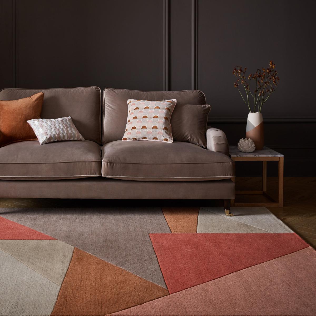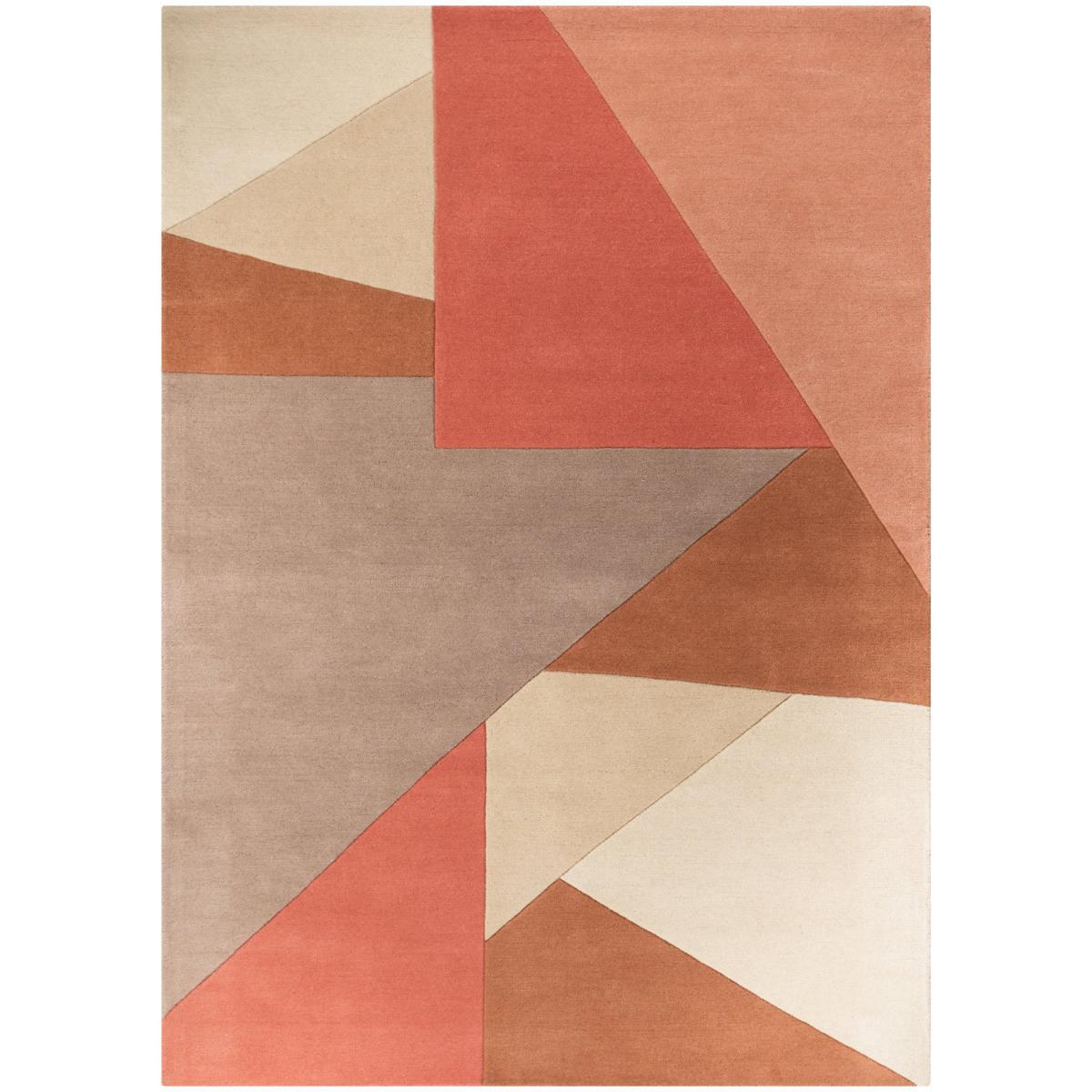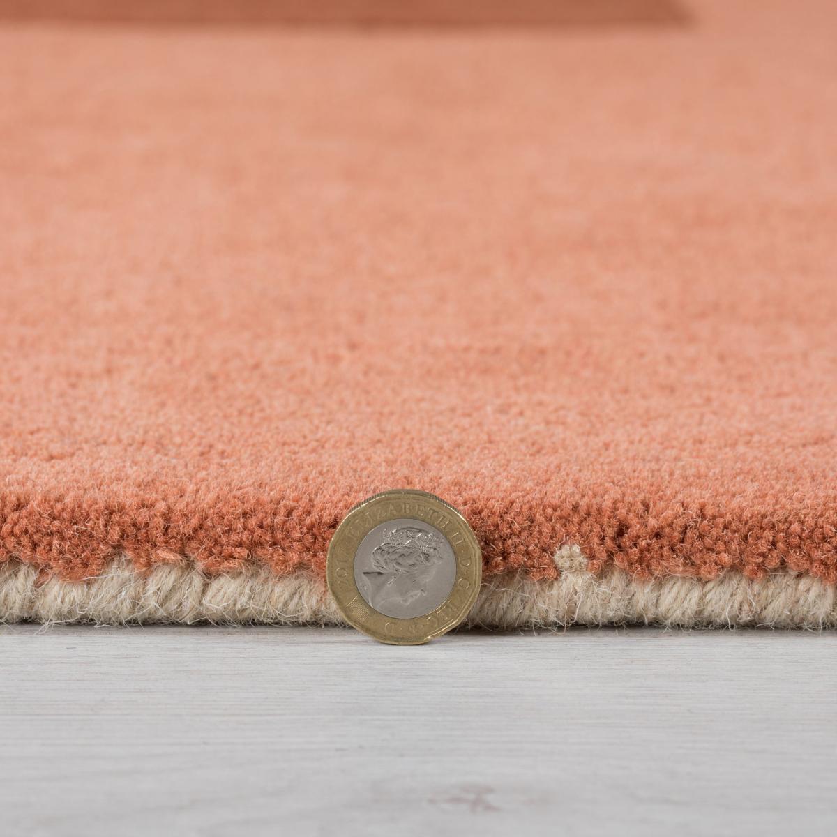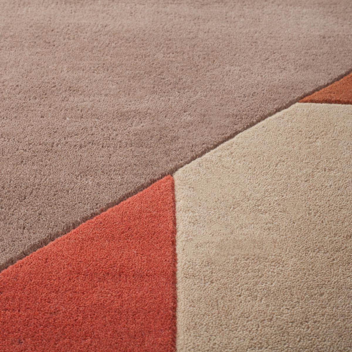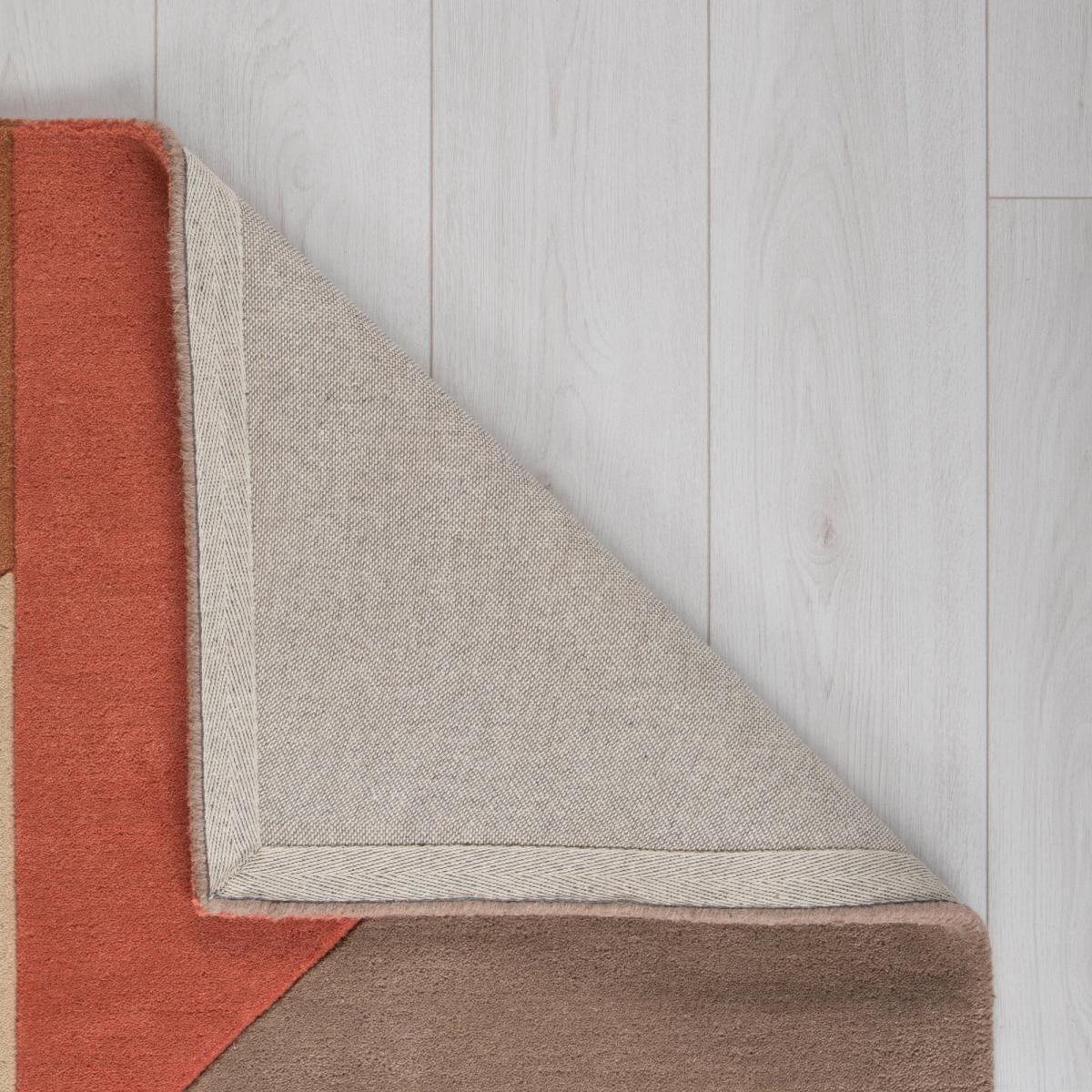 Feminine pinks paired with burnt orange and natural shades brings together the Nori Geometric Wool rug. Hand-carved detailing emphasises the clean lines and geometric design, creating a statement of shapes for your space. Handmade in India by skilled rug artisans, the Nori rug uses 100% wool to maximise sound and warmth insulation for modern living. We love using the on-trend pink and russet colour combination to define a dreamy bedroom or living space. Don't forget to buy our handy anti-slip mat,. Here,. Available in a range of sizes. This is a dense hand-made rug. When opening, re-roll your rug pile out and leave in a warm room for 24 hours before putting in place, this will help to reduce wrinkles and curling from packing. Do not pull any loose threads, please cut them carefully with scissors to remove. Avoid prolonged exposure to direct sunlight as this may cause fading of the colour. Turn your rug regularly to ensure even wear and to reduce pressure marks from furniture. Wool fibres may shed when new and during use, this is a characteristic of this product and is not a defect and should reduce with normal use and regular vacuuming. Before using any cleaning products on your rug, test on an inconspicuous area first to ensure it does not affect the colour. Clean spills immediately by blotting with a clean dry white cloth - do not rub as this may stain the fibres. Vacuum your rug regularly to remove everyday dirt, we recommend the use of a suction type vacuum cleaner as a rotating vacuum brush can cause damage to the pile surface. We recommend the use of an anti-slip mat beneath your rug to prevent it from slipping and sliding out of place. Latex is used on the back of this rug. Please do not leave babies or young children unsupervised on this rug.