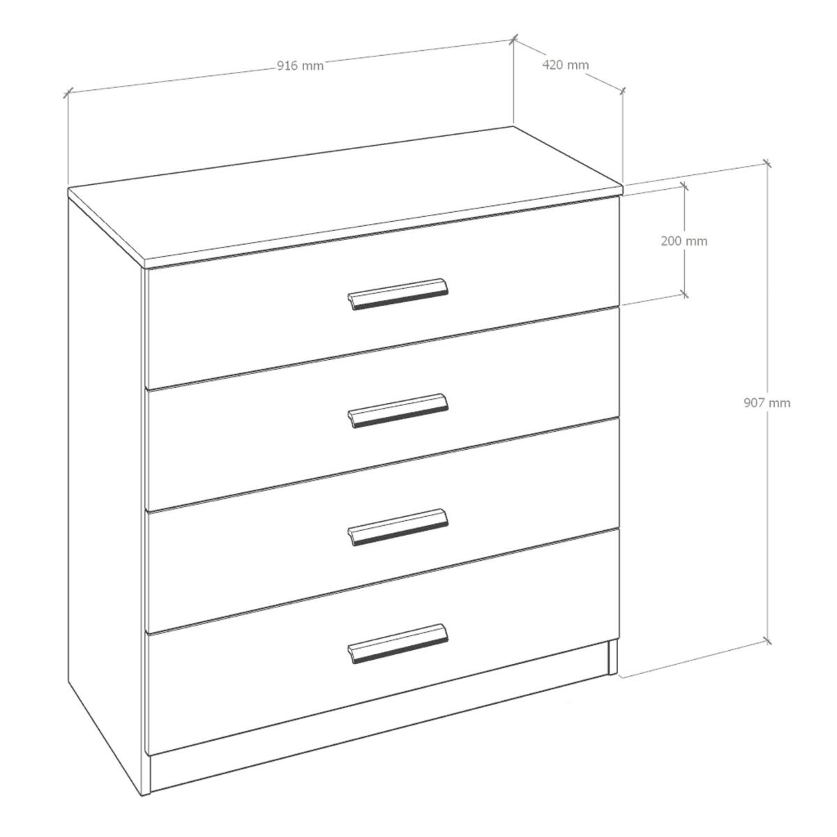 A great addition to any bedroom, this chest of drawers is the perfect storage solution for your clothes and linens. Four large drawers are finished with metal runners and black resin handles for a sturdy and stylish construction.