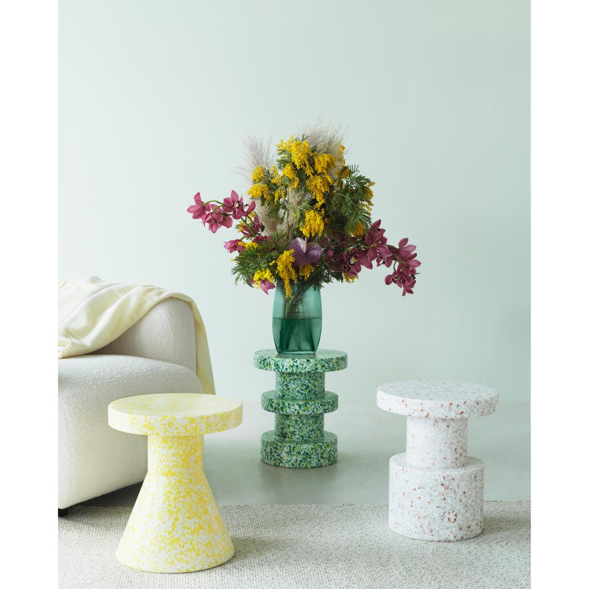I love this little 'bit' because it combines simplicity with instant visual appeal. Its minimalist design makes it versatile enough to work in both modern and industrial interiors, while the speckled finish adds texture and a tactile element. It’s great as a footstool in a cosy living room corner or as a side table in a Bedroom or lounge. Practical styling tips include pairing it with neutral tones for a calm, understated look or using it as a base for decorative objects like vases or trays to create interest. Its durable construction also means it can double up for extra seating when needed, making it as functional as it is stylish.