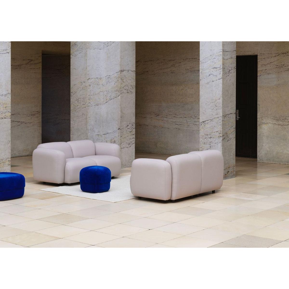 Give your home a pop of colour with the Circus pouf; a versatile furniture piece in an exclusive, Scandinavian design. With its rounded shape and clean, graphic lines the Circus is a modern interpretation of the antique Moroccan leather pouf. The pouf allows contradictions to meet in a design whose style is stringent and minimalist, while at the same time having a soft and inviting expression. The Circus pouf consists of two different types of foam; firm foam to maintain the shape of the bottom part of the pouf and softer foam on the upper part for great seating comfort. Circus is a multi-functional piece of furniture and can, for example, be used as an extension for your sofa, as a seat for a coffee table or as a decorative seat in the bedroom. It is available in soft and luxurious closely woven velour in a range of saturated colours, great for adding depth, texture and warmth to the interior.