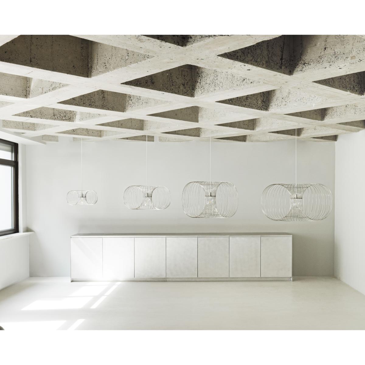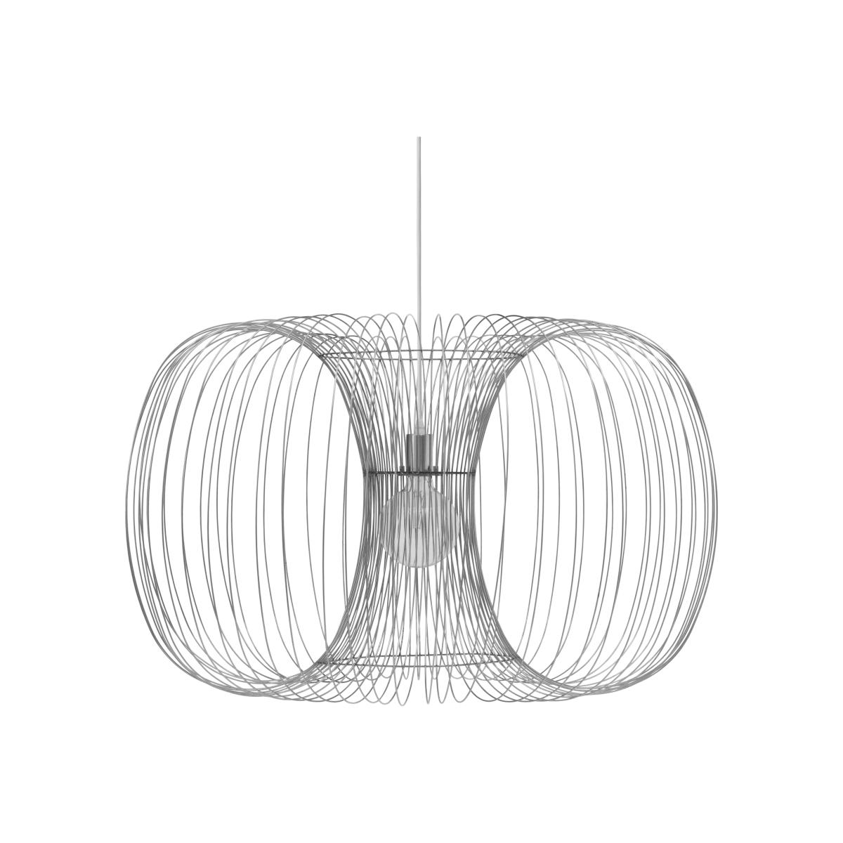 I love the coil lamp for its modern, sculptural appeal that adds a sense of movement and texture to any ceiling space. It's versatile enough to work well in minimalist interiors, while its sculptural form can also make it a focal point in industrial or contemporary settings. When styling, consider hanging it in rooms with high ceilings to really showcase its shape, or in kitchens and dining areas for a statement overhead light. Pair it with warmer bulb tones to soften its metal aesthetic, and keep surrounding décor simple to let the lamp’s unique design stand out. It's a great choice for introducing a touch of Scandinavian design ethos - functional, stylish, and sculptural.