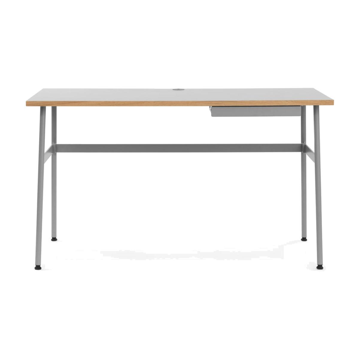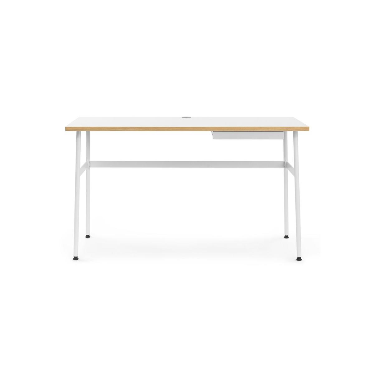 In the design of Journal, practical usage is addressed by discrete functional details. The desktop has an integrated wire grommet, while a steel drawer under the desktop provides space for office supplies. The little details of Journal help to create a pleasant environment in which good ideas can flow freely. The desk is suitably small, so that it doesn't take up too much space.