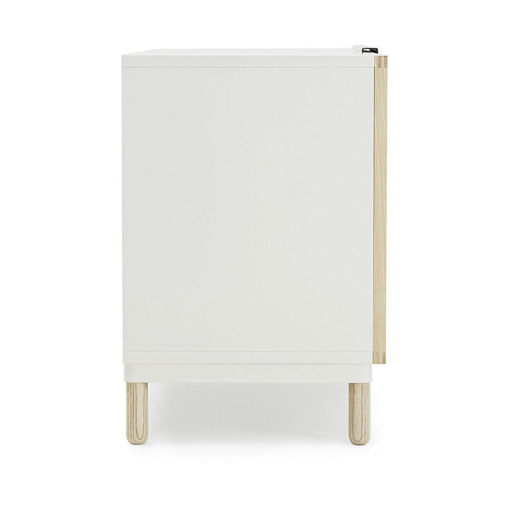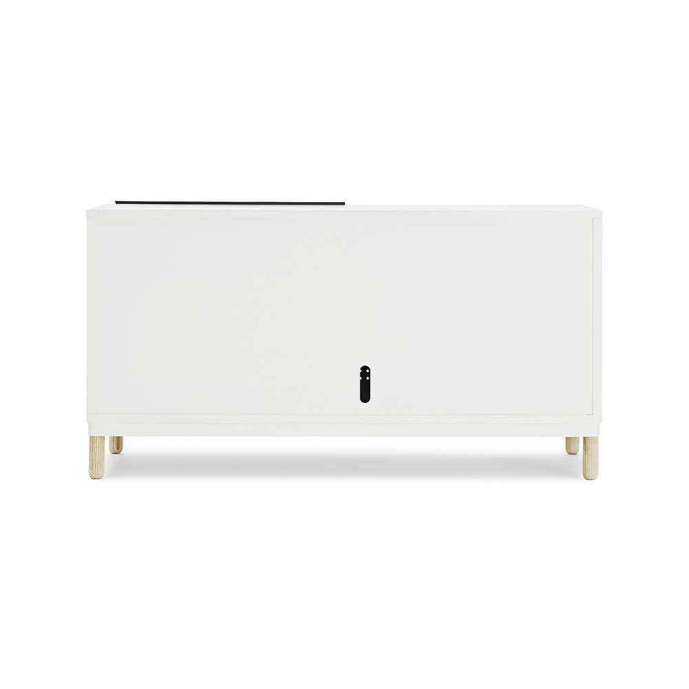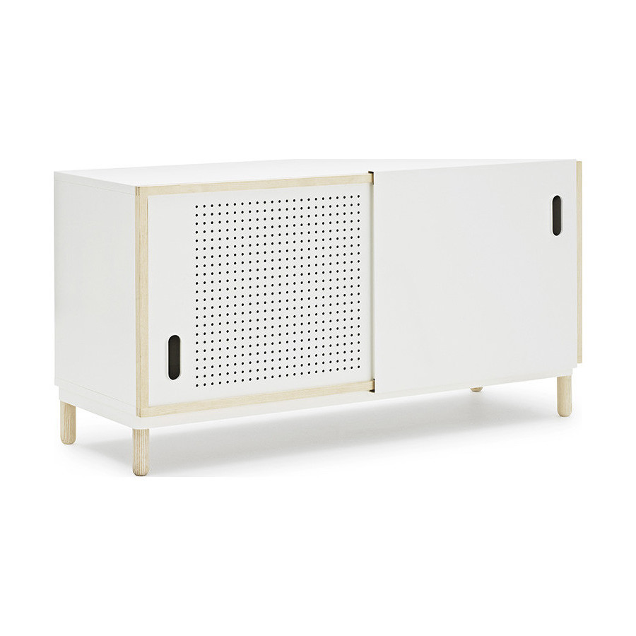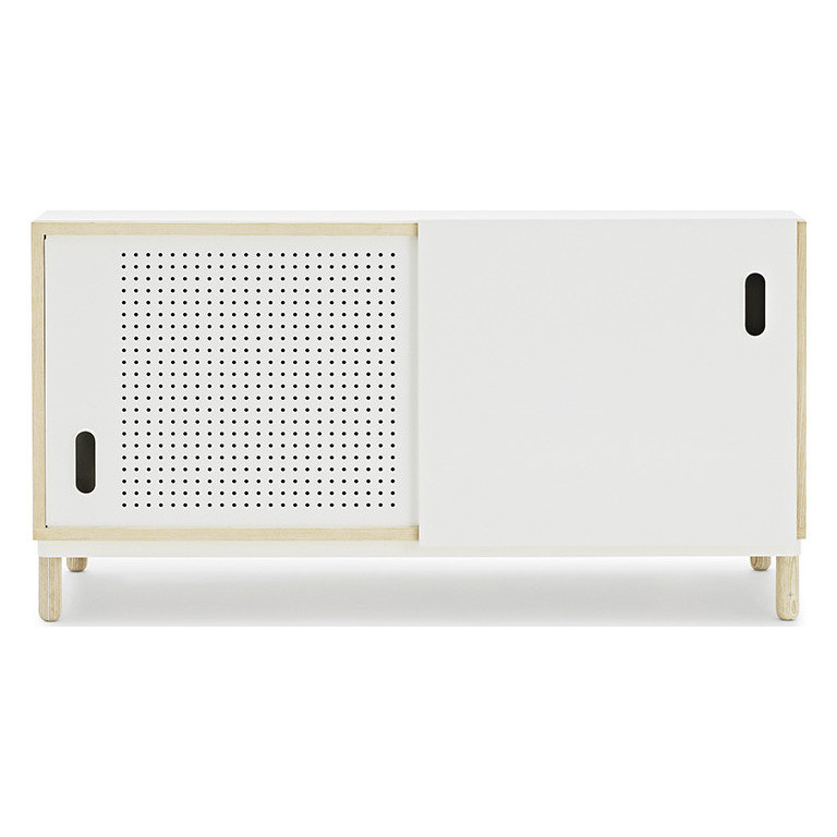 Add instant style to your interior with the Kabino sideboard from Normann Copenhagen. With a painted ash wood frame, this sideboard features sliding doors and is available with either grey or white doors. Use as an extra storage space or even as a TV cabinet: the perforated holes in one sliding door make it possible to use a remote control even when the doors are closed. To further increase storage space, remove the legs and stack one Kabino on top of the other. Perfect for any room, enjoy stylish versatility with the Kabino sideboard from Normann Copenhagen.