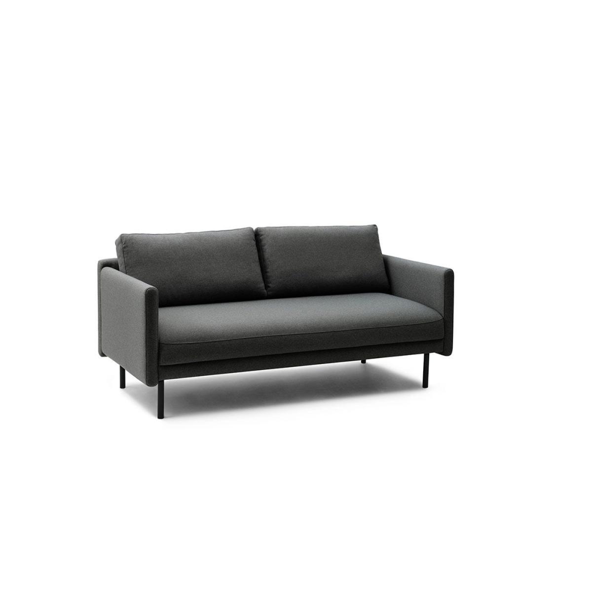 The Rar collection takes its name from the Danish word for pleasant, alluding to its soft and comfortable seat and uncomplicated expression. The collection comprises an armchair, a 2 seater sofa and a 3 seater sofa, all with the same simplistic, timeless design language. Rar is crafted from PU foam with a wooden reinforcement structure inside and powder-coated steel legs and comes in two different textiles and one leather option.