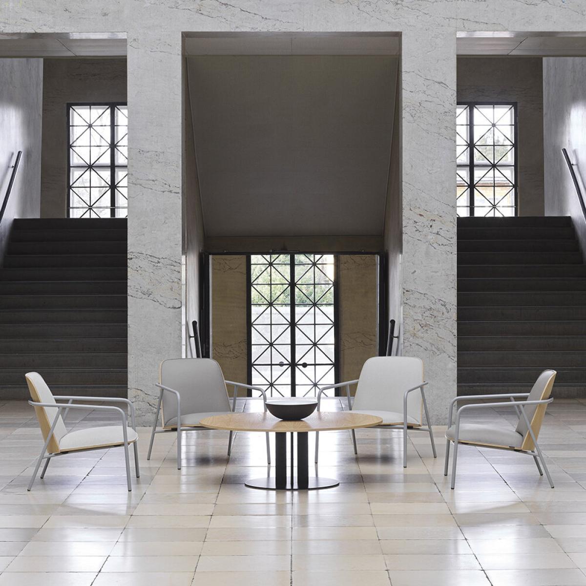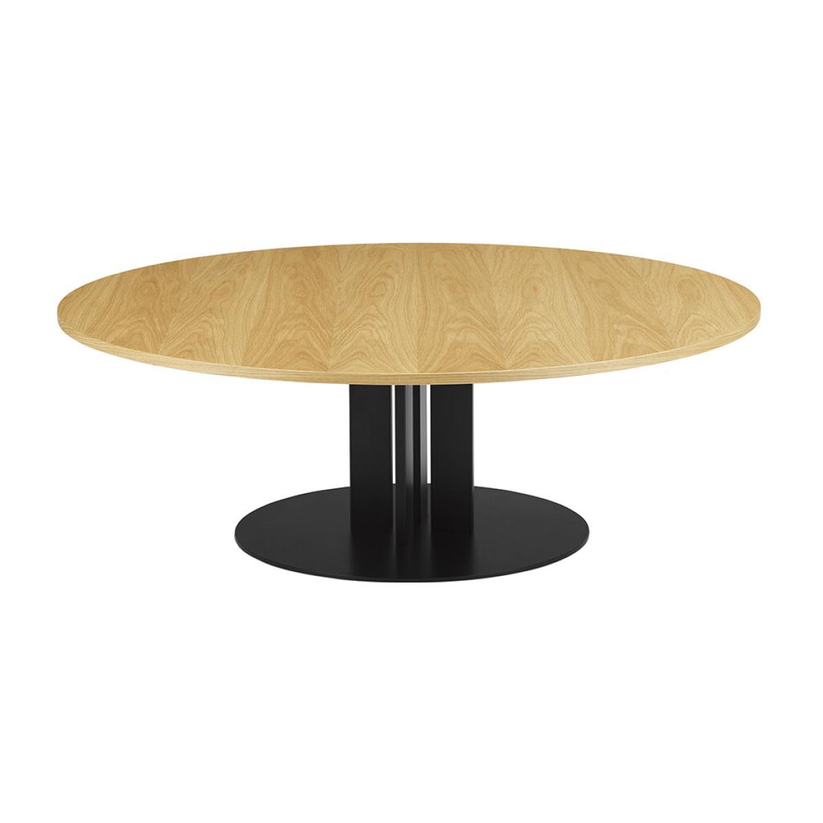 Made a design statement with the Scala coffee table from Normann Copenhagen. With an oak veneer top and a black steel column base, this round pedestal table merges both form and function. A modern tribute to the architectural mastery of the classical column, designer Simon Legald's simple design is made up of four various sized poles so the table looks slightly differerent depending on the angle you view it from. Perfect for a modern living room.