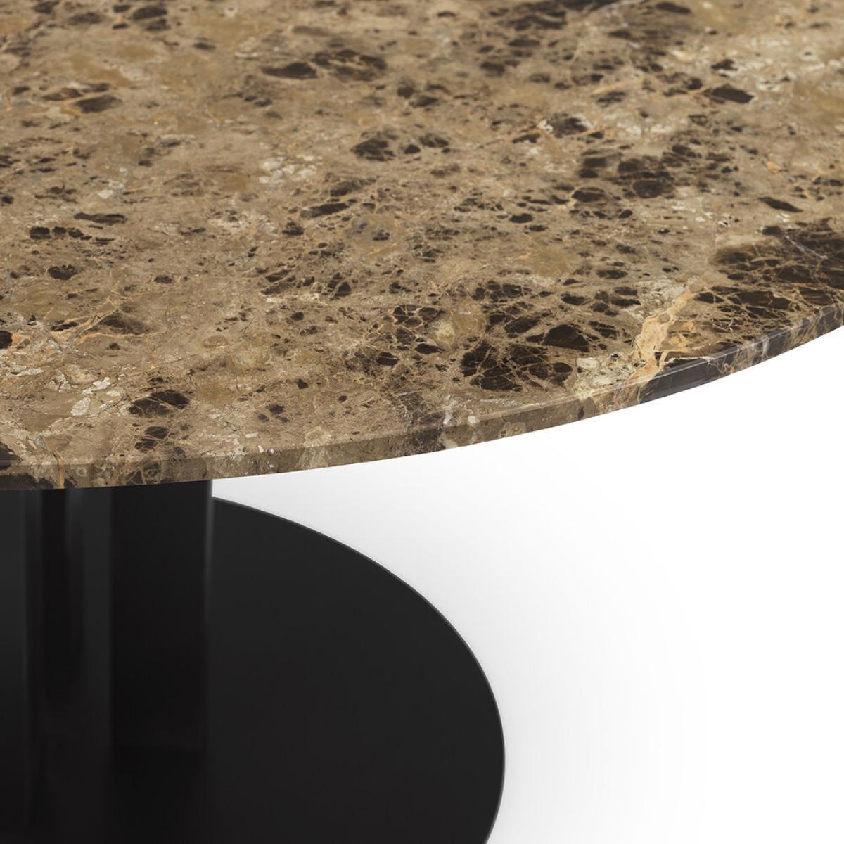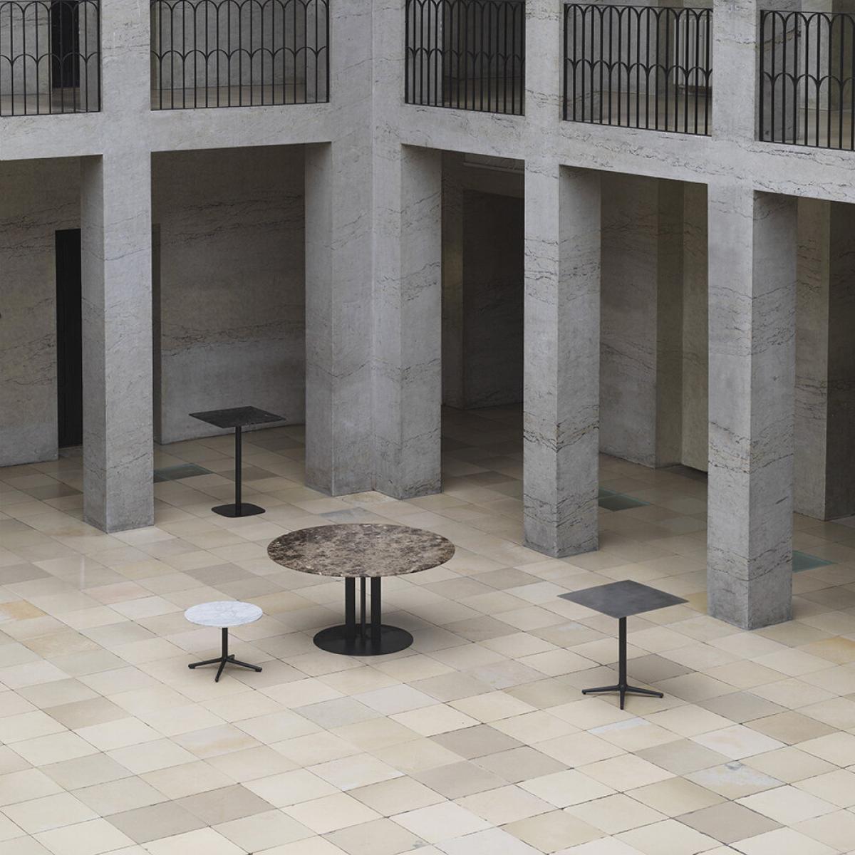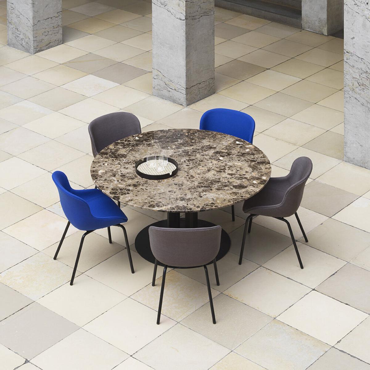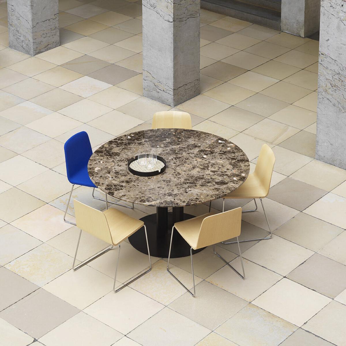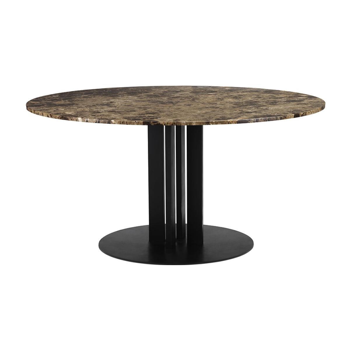 Made a design statement with the Scala dining table from Normann Copenhagen. Merging both form and function, this round pedestal table is a modern tribute to the architectural mastery of the classical column. Featuring a brown marble top and a black steel column base, designer Simon Legald's simple design is made up of four various sized poles so the table looks slightly differerent depending on the angle you view it from. Perfect for a contemporary kitchen or in an entrance hall. Key features: * Round dining table * Material: powder coated steel, marble * Dimensions: Ø150xH75cm * Black steel pedestal base * Four poles create the column * Brown marble top * Modern design * Inspired by the classical column * Designed by Simon Legald * Self-assembly required * Clean with a damp cloth