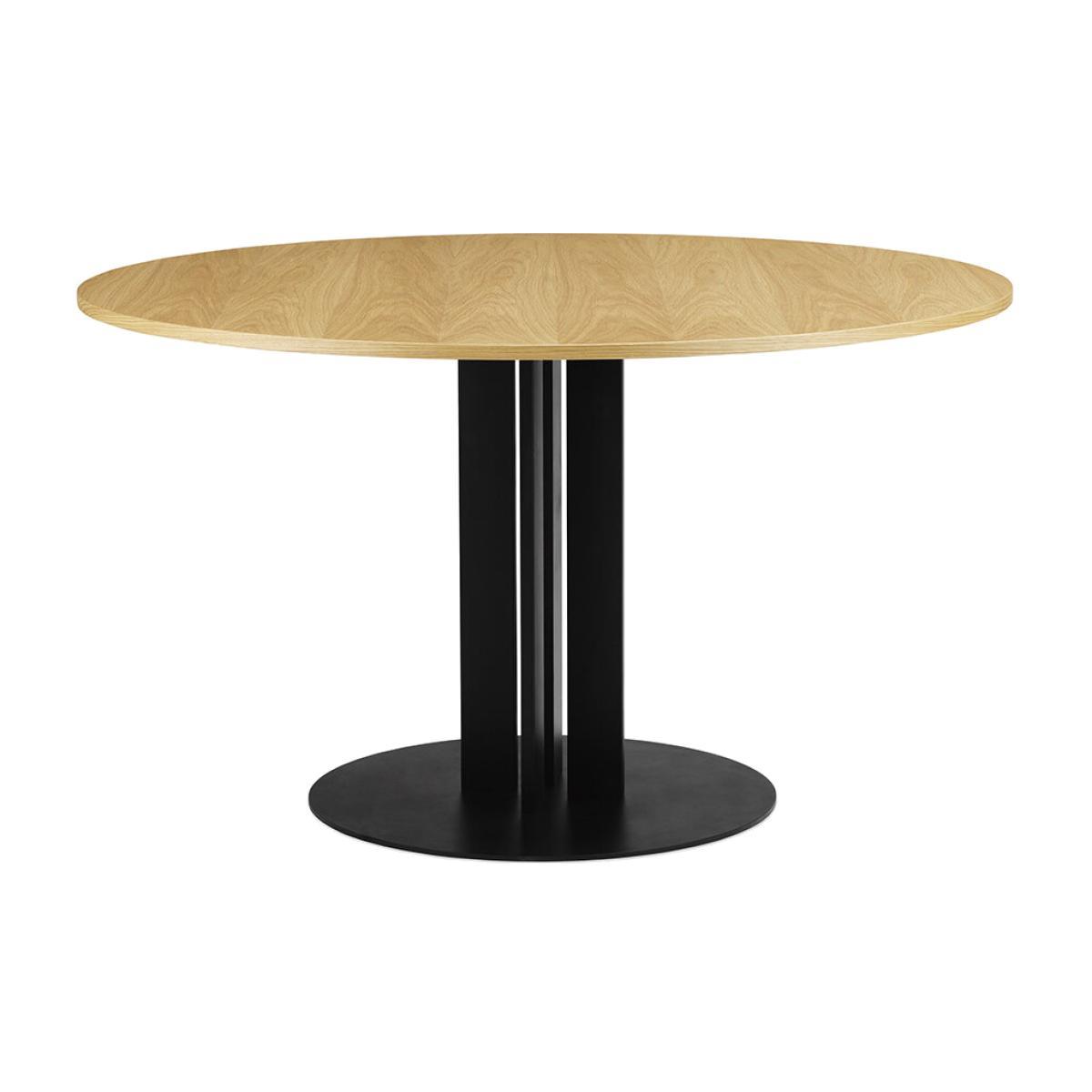 The Scala dining table from Normann Copenhagen serves up serious style. Merging both form and function, this round pedestal table is a modern tribute to the architectural mastery of the classical column. Featuring an oak veneer top and a black steel column base, designer Simon Legald's simple design is made up of four various sized poles so the table looks slightly differerent depending on the angle you view it from. Perfect for a modern dining room.