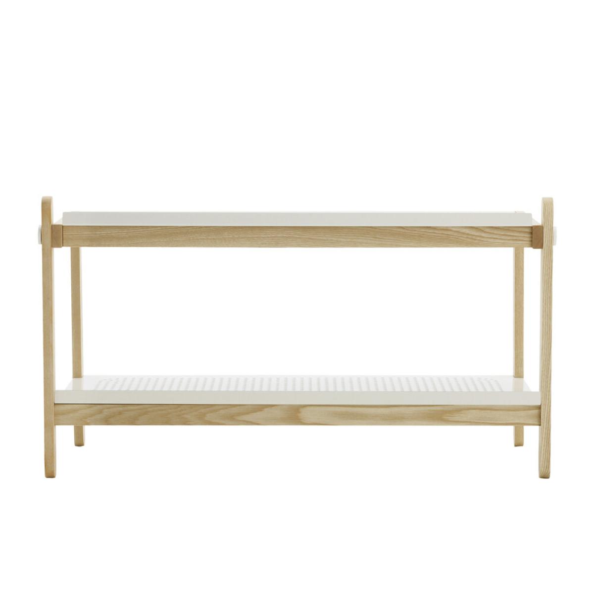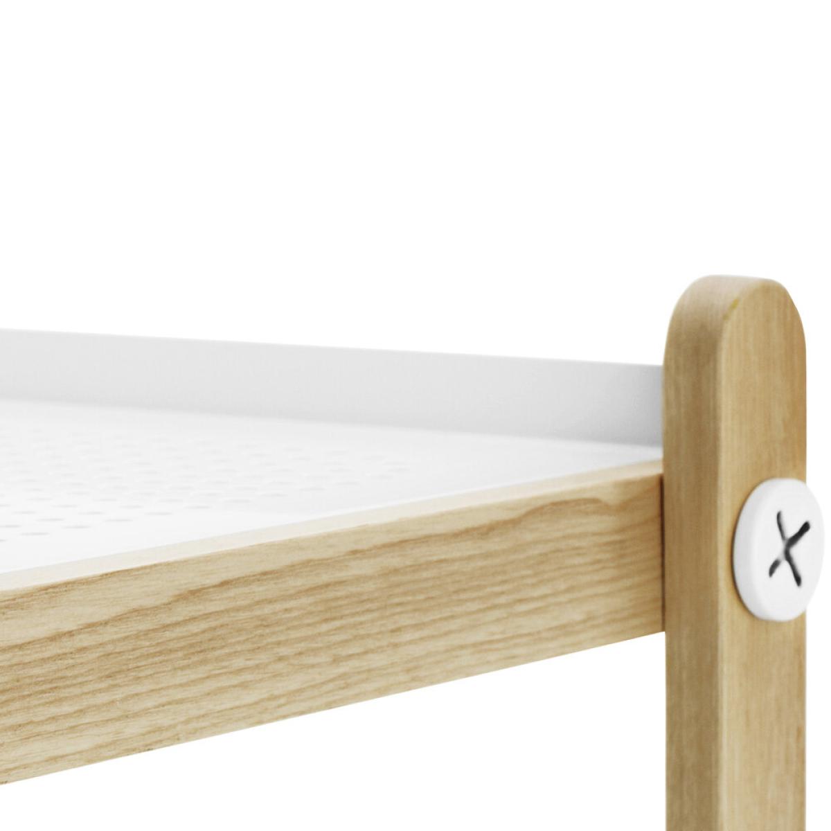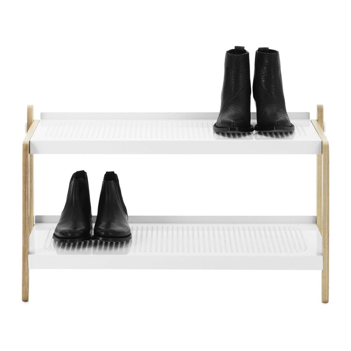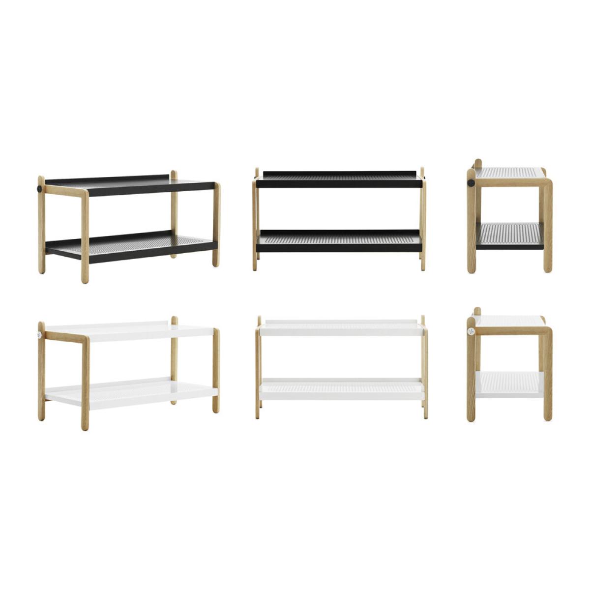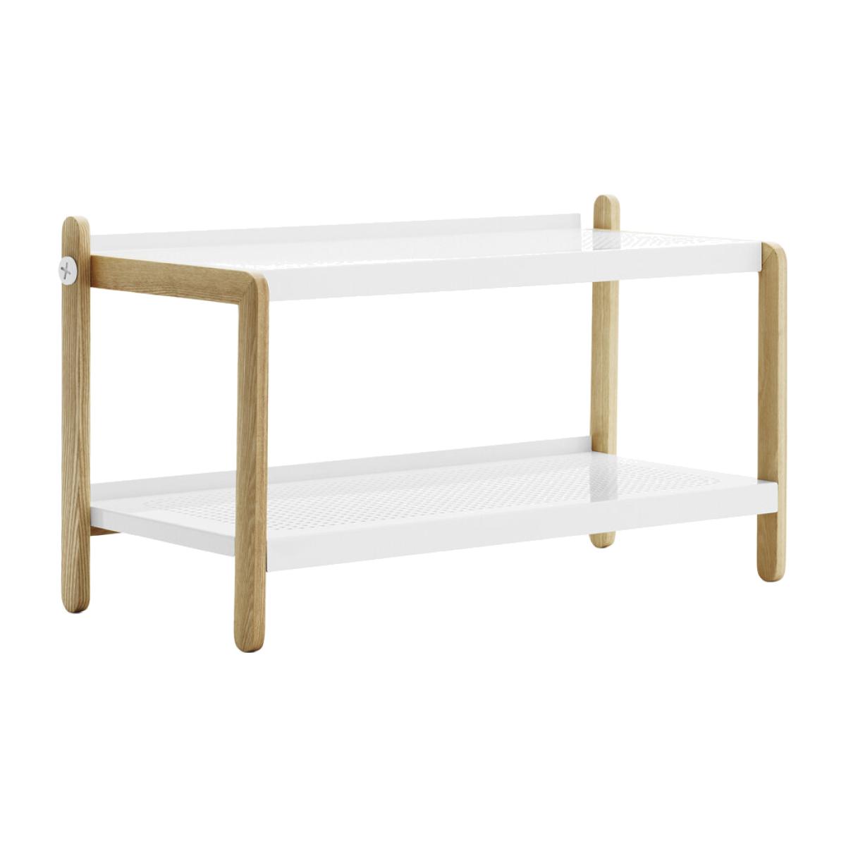 Keep your shoes in order with this Sko Shoe Rack from Normann Copenhagen. With an industrial feel, the design is made with Scandinavian materials. Consisting of a wooden frame with two perforated steel shelves, the design is simple and sleek. Available in two colours.