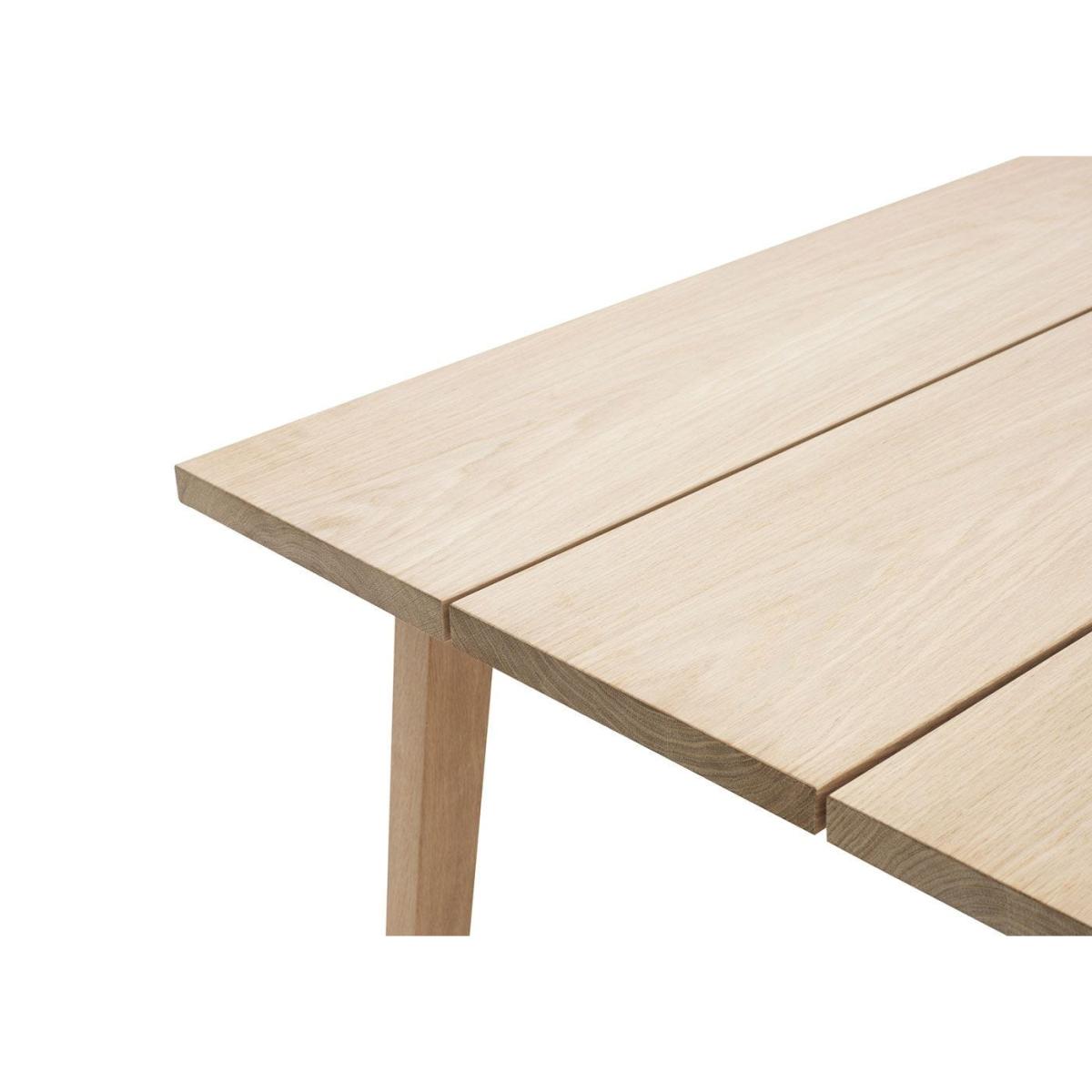 The Slice Table is a classic, attractive design where the table top quite simply consists of three long, wide planks. The table comes in three different lengths perfect for residences where space is not an issue. The gaps between the planks create air and add character to this Scandinavian design. A simultaneously solid and contemporary expression. Slice is great for the design lover who wants the natural look of raw wood. The hardness and durability of the oak make the material very suitable for use as a table.