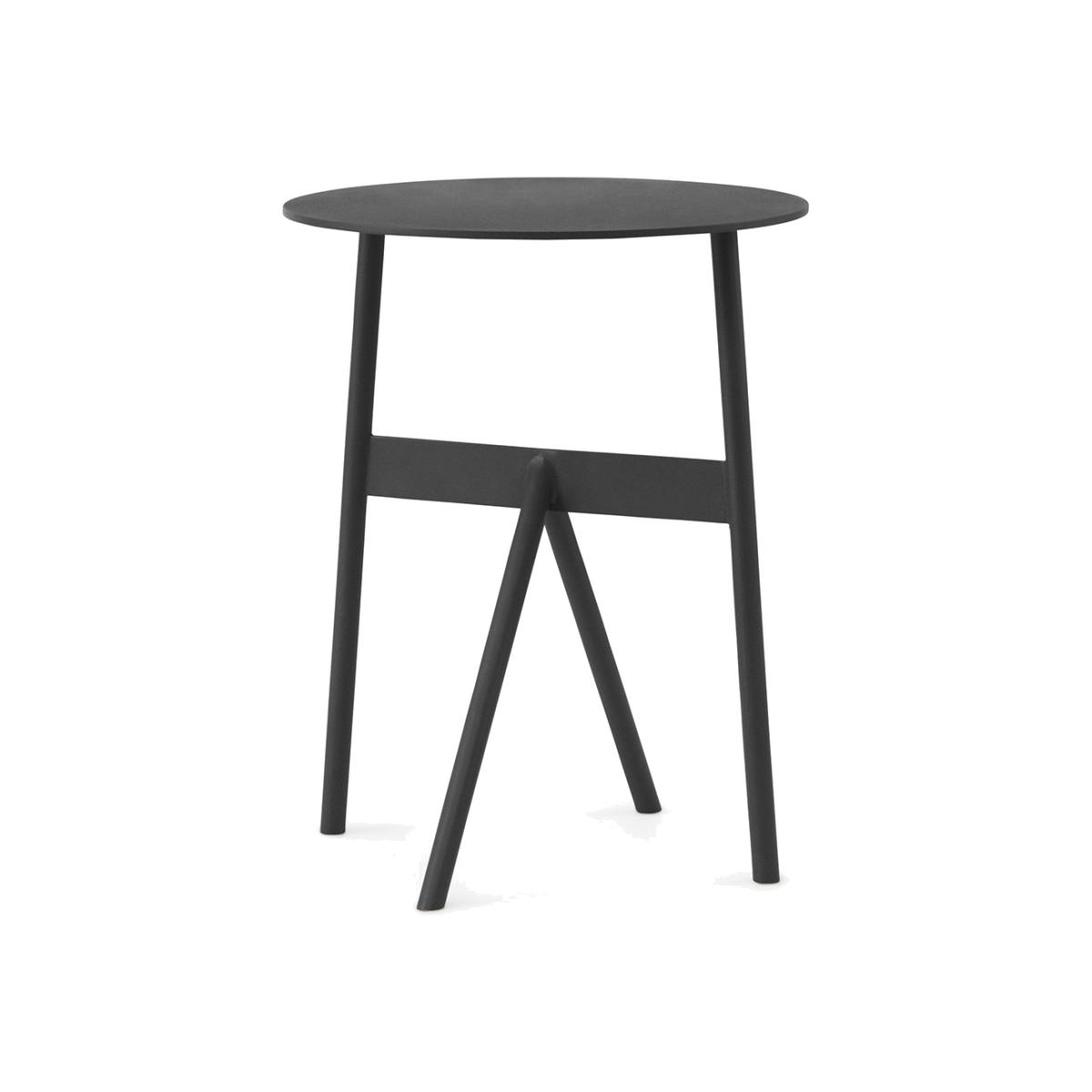 Whether you use it as a side table in the living room, a nightstand in the bedroom or as a sculptural table in the hallway, Stock from Norman Copenhagen will add architectural expression to any setting. Beautifully symmetrical, this side table features angled legs that will add a touch of intrigue to any living space. Key features: * Side table * Material: powder coated steel * Dimensions: H46xØ37.5cm * Designed by MSDS Studio * Symmetrical design * Angled legs * Black colour