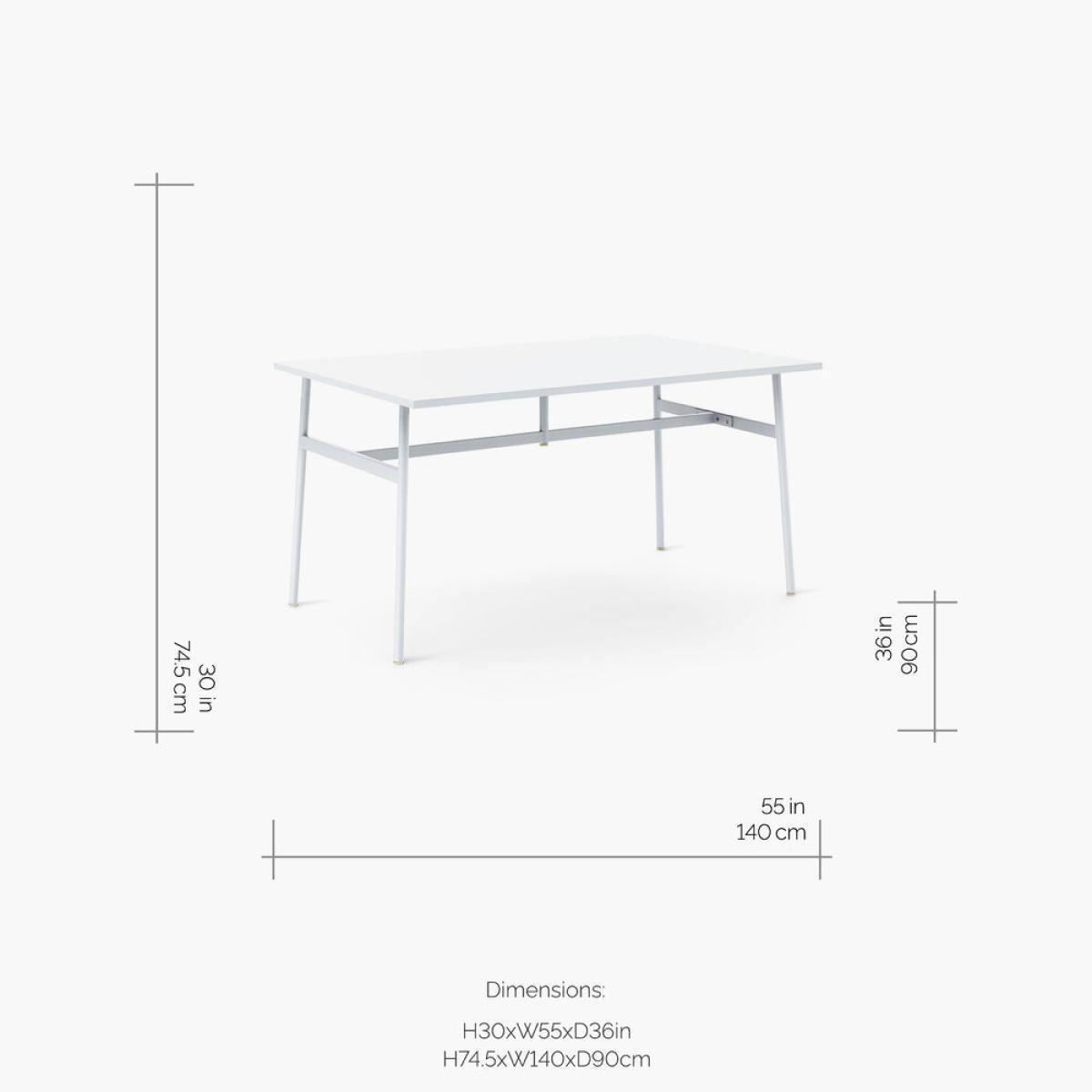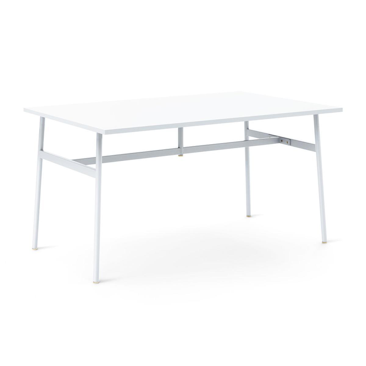 Max out the minimalism in your home with this Union dining table from Normann Copenhagen. Available in chic grey or white this table has a sleek and simple Scandinavian feel. With a nano-laminate top and brass tipped feet, it'll be with you for years to come. Key features: * 6 seater dining table * Material: laminate on particle board, powder coated steel, brass * Dimensions: H74.5xW140xD90cm * Designed by Simon Legald * Simple minimalist inspired design * In chic white with brass tipped feet * Nano-coated laminate top * For a fingerprint-free & scratch resistant surface * Arrives flat packed & is easily assembled * Assembly manual included