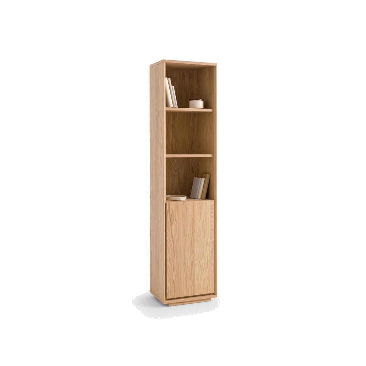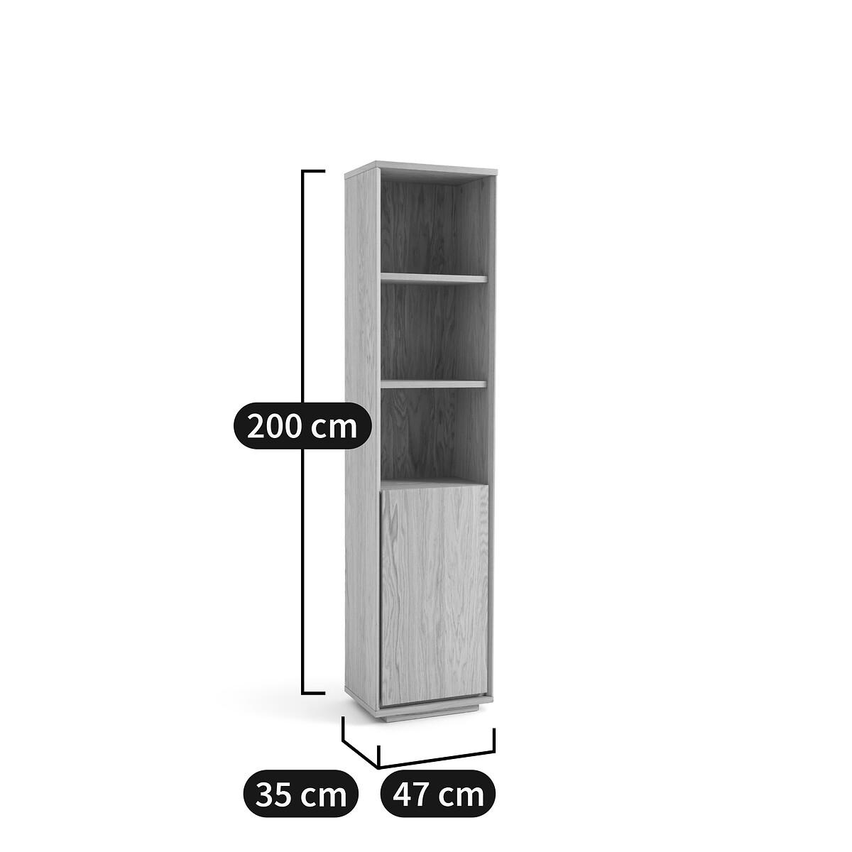 The Norrem bookcase is ready for all uses! With its open storage space and its door in the lower part, this piece of furniture fits into all interiors. Made in Europe. Product Details • Oak veneered particle boards and acrylic varnish finish • Low melamine cabinet bottom • FSC® certified wood • 3 open compartments • 1 door in the lower part with 2 compartments behind • People required for assembly: 2. Quality Info • Soft-closing : soft, silent door closing system, also preventing fingers from being trapped. Dimensions • Width: 47cm • Height: 200cm • Depth: 35cm • Weight: 40kg. Dimensions of 3 upper compartments • Width: 41.8cm • Height: 36cm • Depth: 32.5cm. Total dimensions behind the door • Width: 41.8cm • Height: 77.5cm • Depth: 29cm • This product requires assembly. • Made in Europe. • WOOD FROM SUSTAINABLY MANAGED FORESTS. FSC® certified wood comes from forests that are environmentally, socially and economically well managed. Dimensions and weight of parcel2 parcels • L92.5 x H12 x D54cm, 22.6kg • L206 x H6 x D42cm, 20.9kg