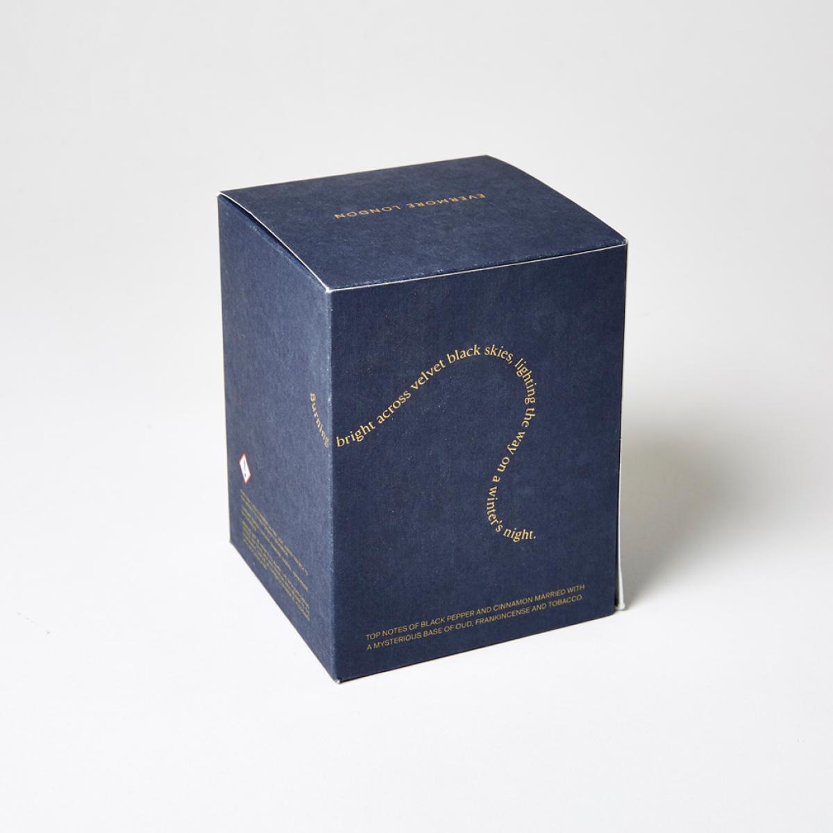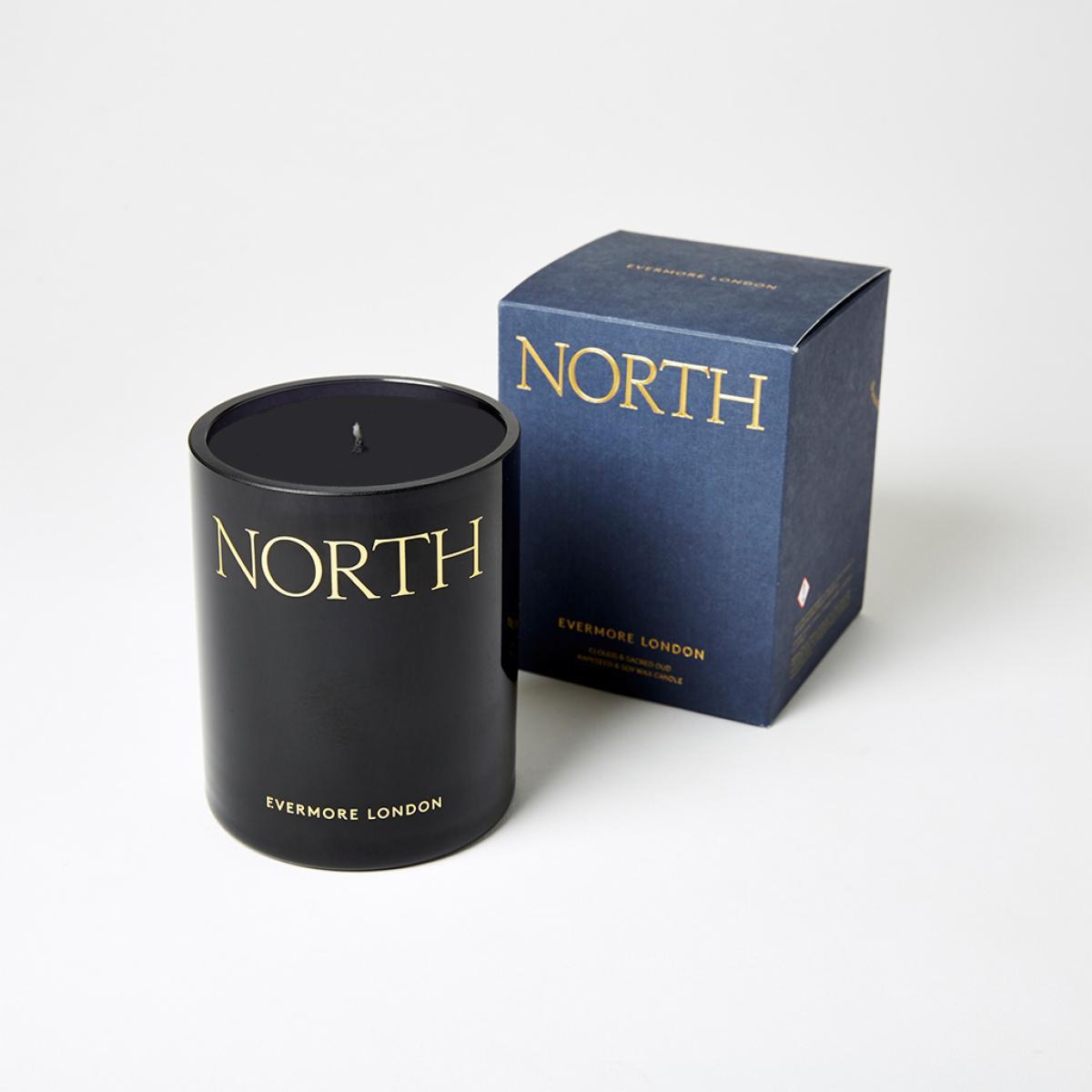Specially developed by Evermore, the beautifully fragranced North Scented Candle evokes memories of the North Star burning bright across deep black winter skies. Fragrant notes of dry oud, leather and tobacco provide an earthy base for woody heart notes of cypress, as well as a final flourish of black pepper and cinnamon that will leave your room with a rich and atmospheric scent. Striking the perfect balance between an irresistible scent and beautifully designed packaging, the natural candle is ethically produced using vegan rapeseed and soy wax and is hand-poured in the UK into a hand-blown recycled glass vessel. Burning time: 60 hours