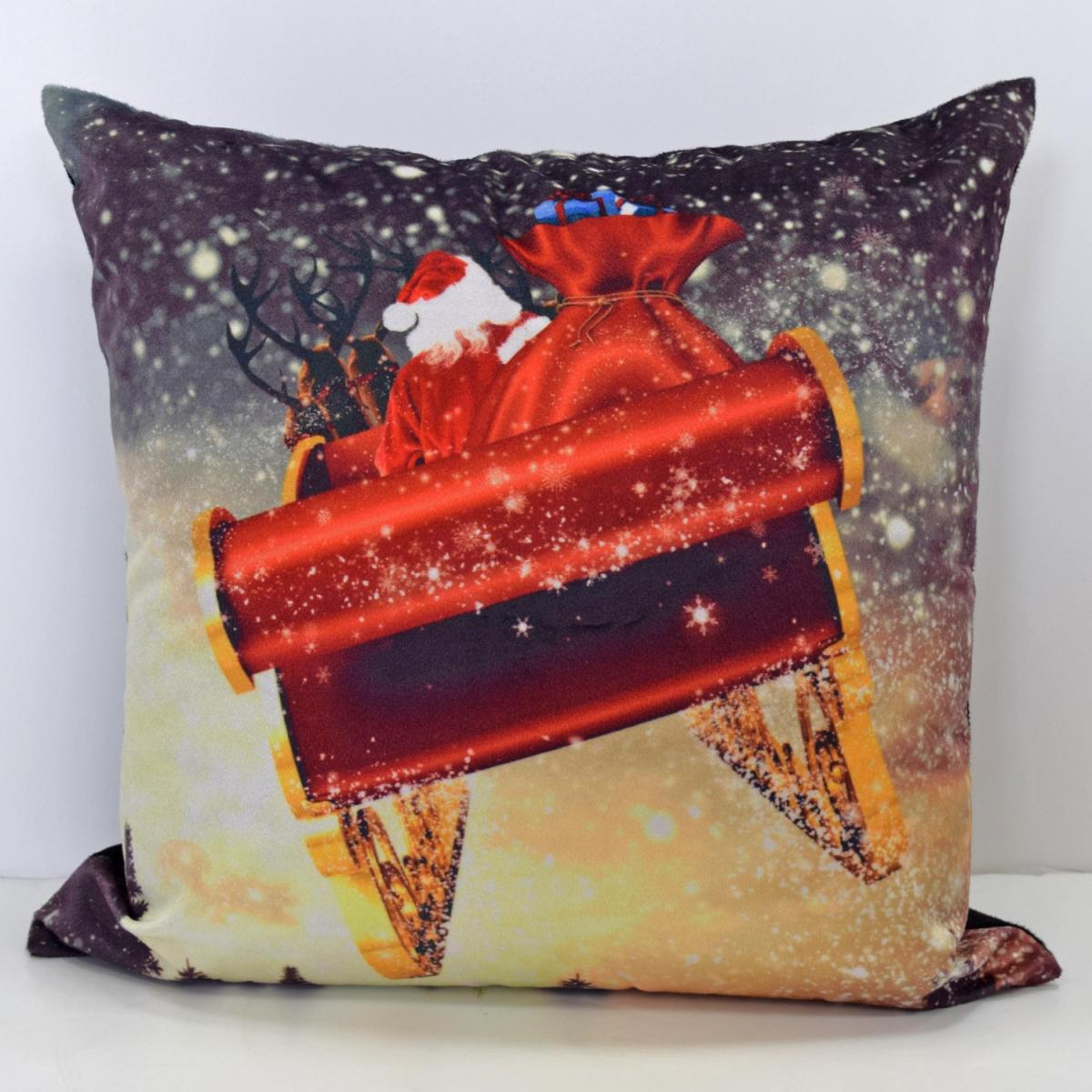 Bring the magic of christmas into your home with this enchanted flying santa and sparkling tree scene photographic cushion cover. Printed on luxuriously soft velvet.