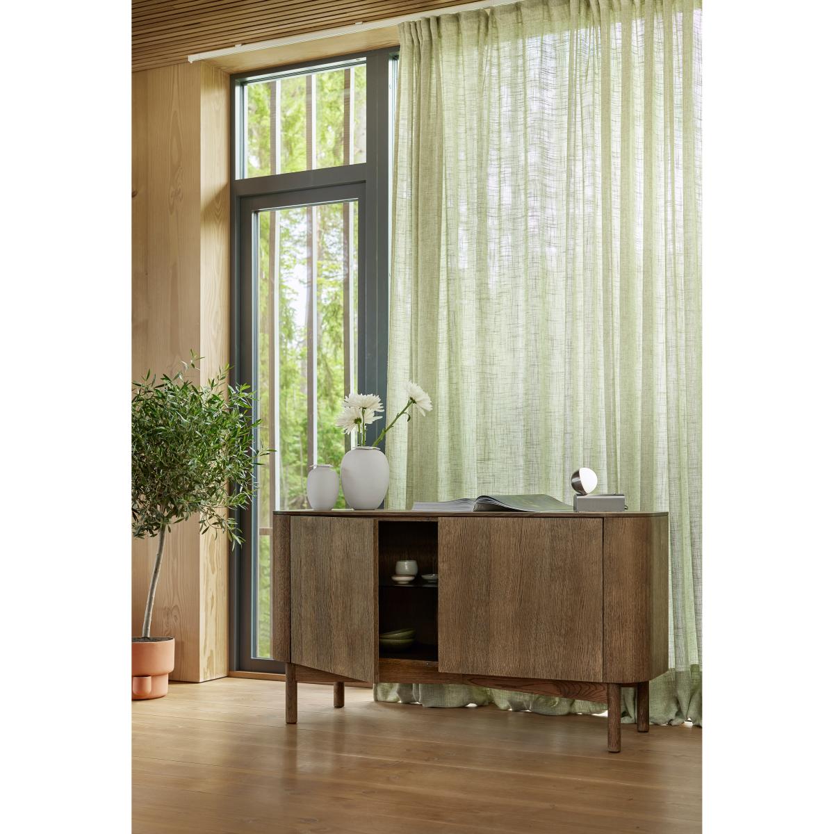 I really like this sideboard for its sleek, modern silhouette and its practical size, making it versatile for various spaces. The smoked oak finish offers a warm, contemporary look that pairs well with both minimalist interiors and more textured, layered schemes. It works especially well in living rooms, dining areas, or even bedrooms where subtle storage is needed without overwhelming the space. To style it, consider adding a combination of decorative objects like vases, books, or art pieces for visual interest, while keeping practical essentials tucked away inside. Its neutral tone provides a perfect backdrop for bold colours or patterned accessories, giving you flexibility to update your look over time.
