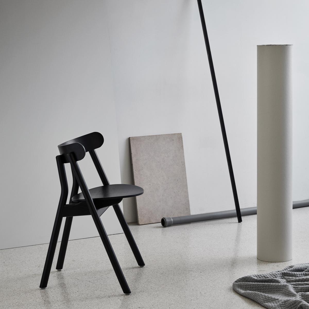 Nordic design meets Japanese style — the Oaki chair from the Norwegian brand Northern is a highly expressive piece of furniture. Designed by Stine Aas, the chair draws upon the simplicity and artistry that characterize traditional Japanese woodcraft. Stine deliberately chose to hide all the joints and seams of the chair, which gives the piece an air of refinement and weightlessness, appearing as one single uniform piece. The four legs branch out from the backrest at an angle producing creative and playful angles. Each leg rests on the floor slightly askew from the chair rather directly above it, giving the piece a sense of life and movement — almost as if the chair is mid-stride. The Oaki is made of solid oak and is a beautiful centrepiece with a lot of character. Choose from several colours.