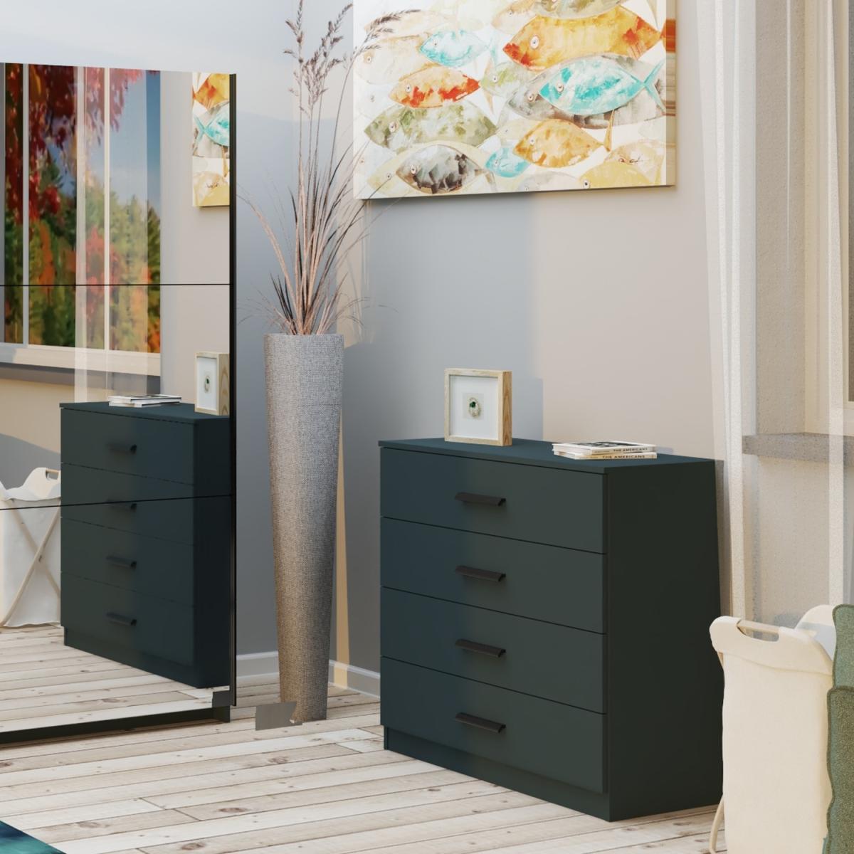 This large 4 drawer chest offers large amounts of usable storage. Made from sustainably sourced materials and finished in a smooth grey Anthracite with contrasting black handles, its clean modern lines are perfect for any room in your house.