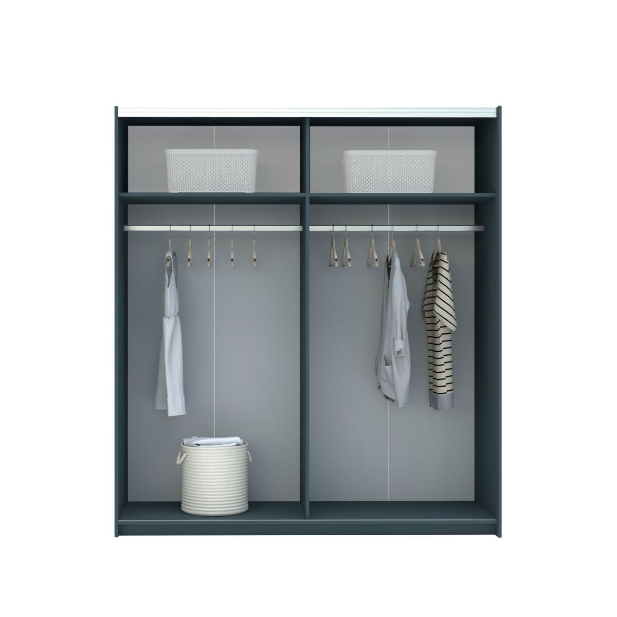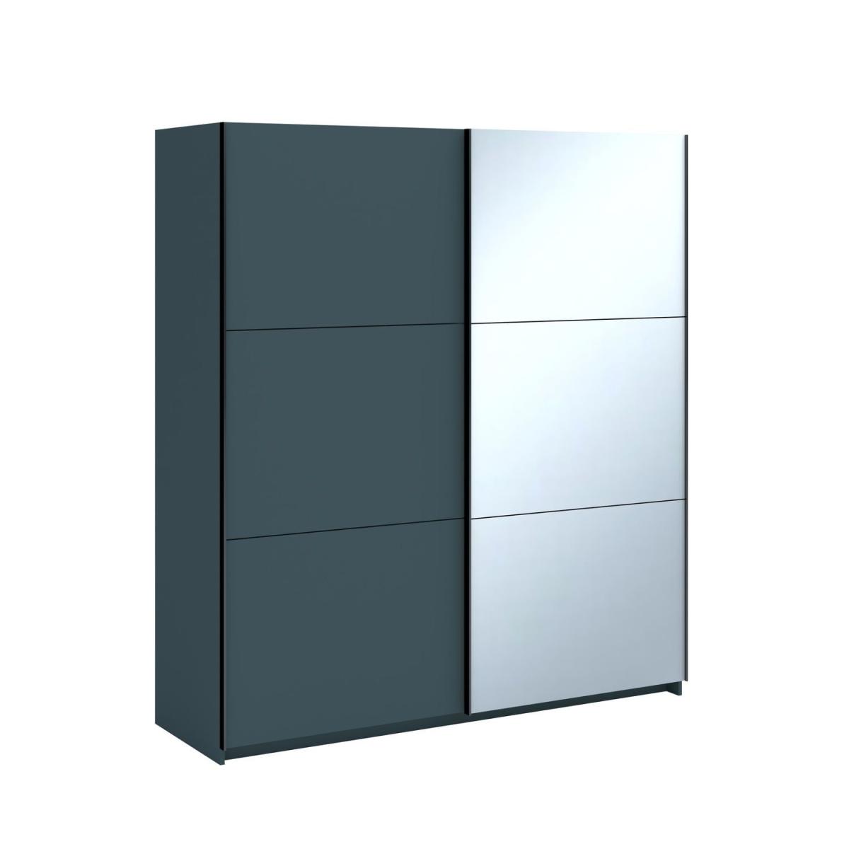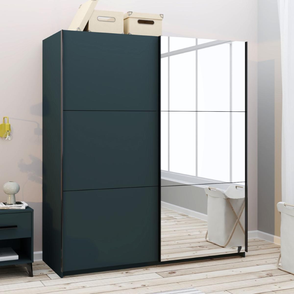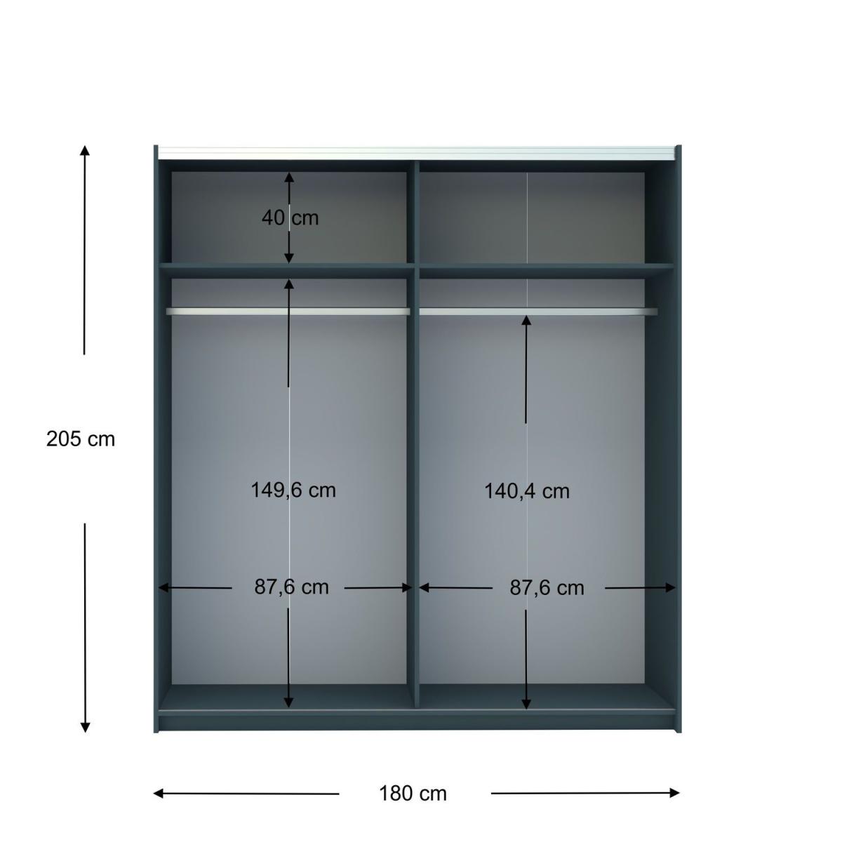 Dimensions H206 x W180 x D60 cm. The Norvik sliding door wardrobe is designed with strength and durability in mind that features a matte anthracite grey carcass with one panelled anthracite door and one mirrored door. The mirrored door allows light to reflect around the room to create a fresh open feel. This wardrobe has two sliding doors so it takes up less room than a conventional hinged 2 door robe that requires extra space for the doors to open. Furthermore the sliding doors do not require knobs or handles. This creates a timeless expression that is easy to combine with different styles. Internally the wardrobe features two hanging rails for longer items of clothing whilst the two top shelf provides ample space for folded clothes or shoe boxes. This wardrobe incorporates a luxury German slider track system on the space saving sliding doors makes for a smooth glide when opening and closing the wardrobe. Features. One matte anthracite grey panelled sliding door and one mirrored. Includes two hanging rails. German slider track system. Includes two shelves rails. Easy assembly..
