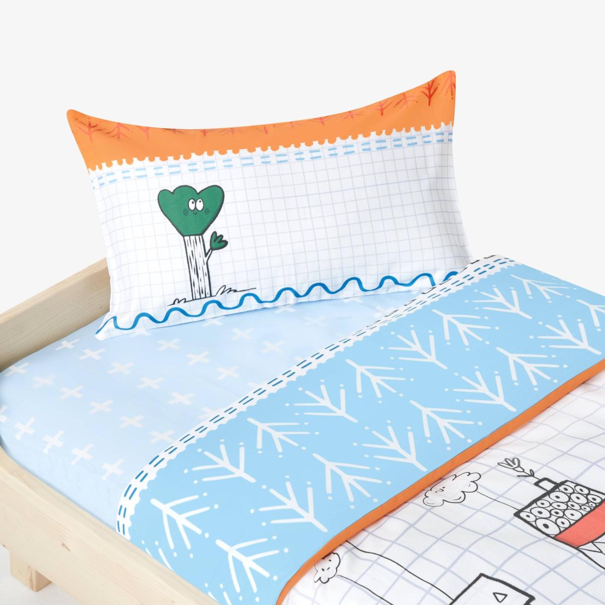 I love this reversible duvet set for its playful yet versatile design, perfect for a child's bedroom. The bold orange and blue tones are lively and engaging, while the reversible feature offers flexibility to refresh the room’s look without extra effort. It works well in modern, scandi, or even eclectic interiors where a pop of colour and a fun pattern can brighten up the space. Practical styling tips include pairing with simple, neutral bedding or furnishings to let the duvet cover stand out, and layering with soft, cosy textiles for added comfort. It's a great choice for parents looking to infuse their child's room with colour while maintaining a clean, contemporary aesthetic.
