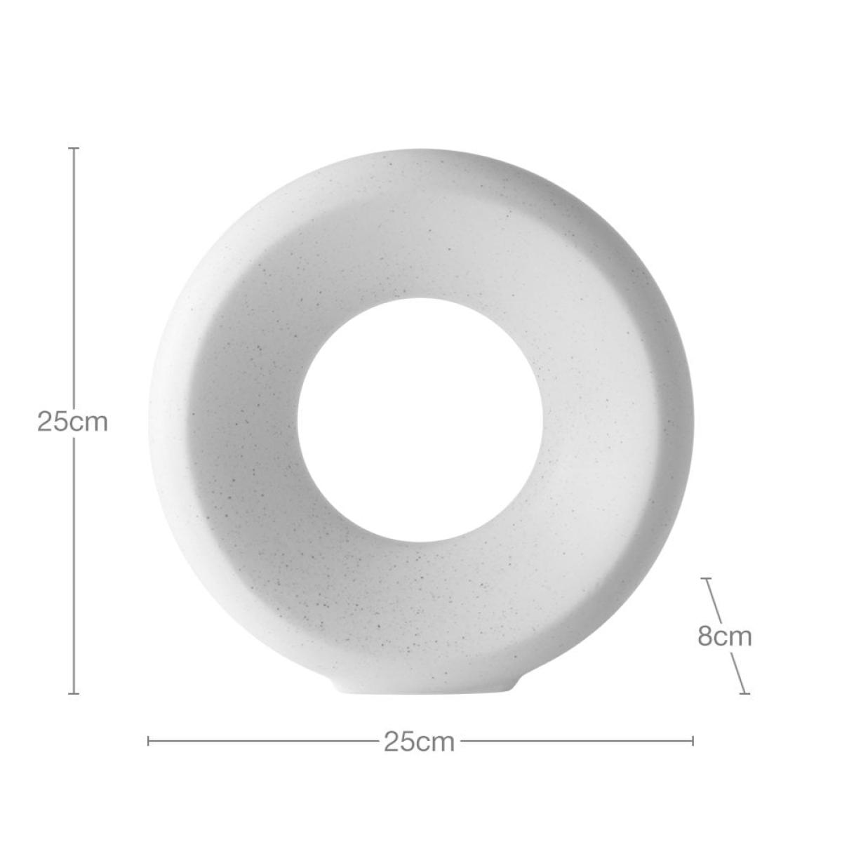 Make a statement with our decorative circular ceramic vase that effortlessly combines a Mid-century design with an eye-catching look. Showcasing, an abstract body in speckled white ceramic with a stunning ring design. The simplicity creates a calm, relaxing atmosphere while providing elegance to any hallway, living room or waiting room. This decorative vase will make a perfect home for flowers, a masterpiece on its own and a bold art statement when mixed and matched with other decorative pieces. Home decor made from stoneware and ceramics are highly durable with a very long lifecycle that uses zero toxic materials in the process, making it sustainably-preferred when searching for the perfect pieces for your space.