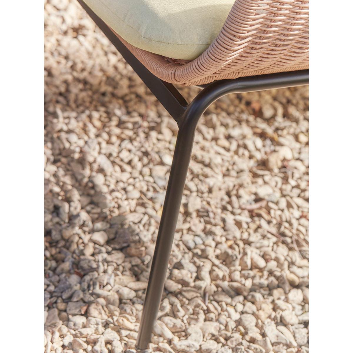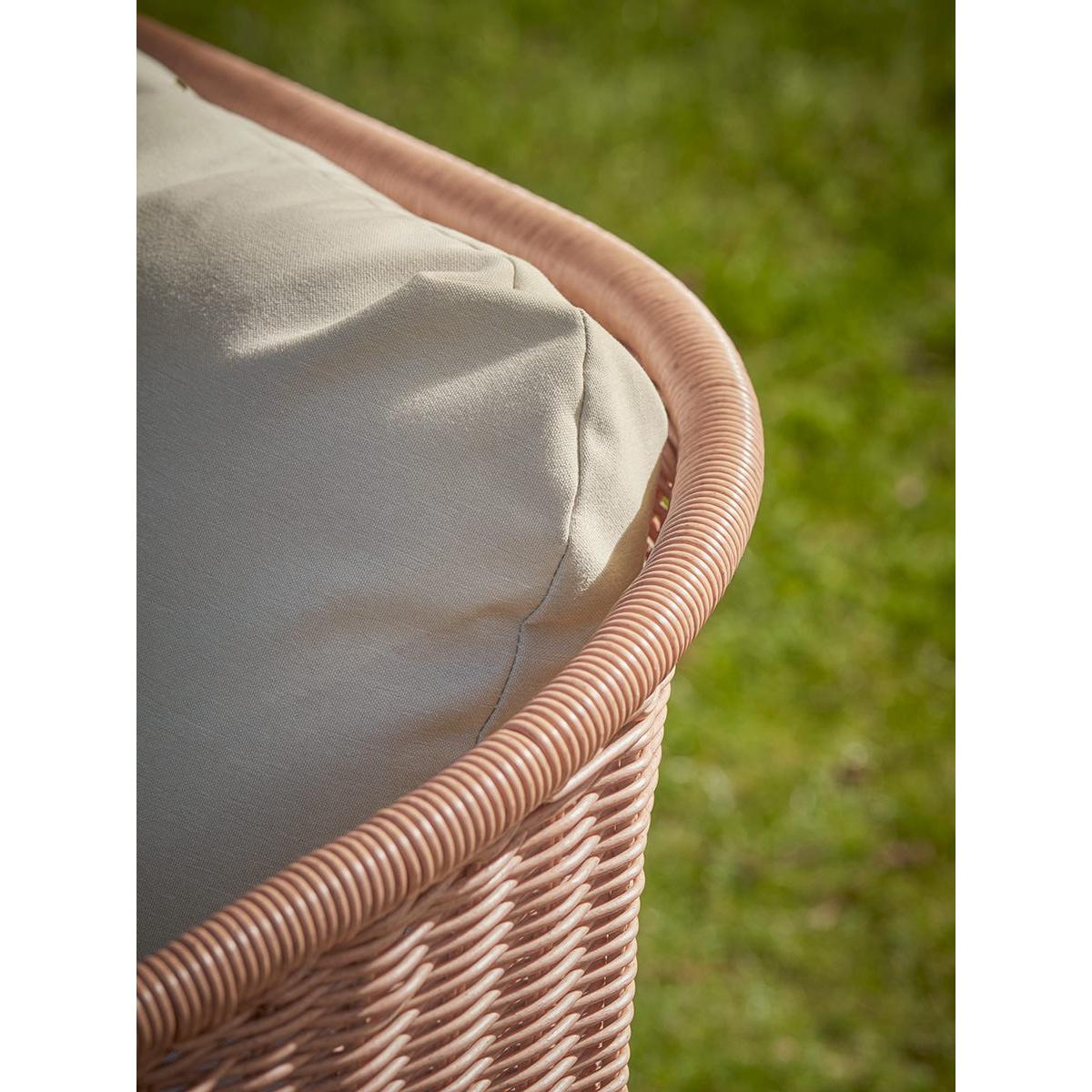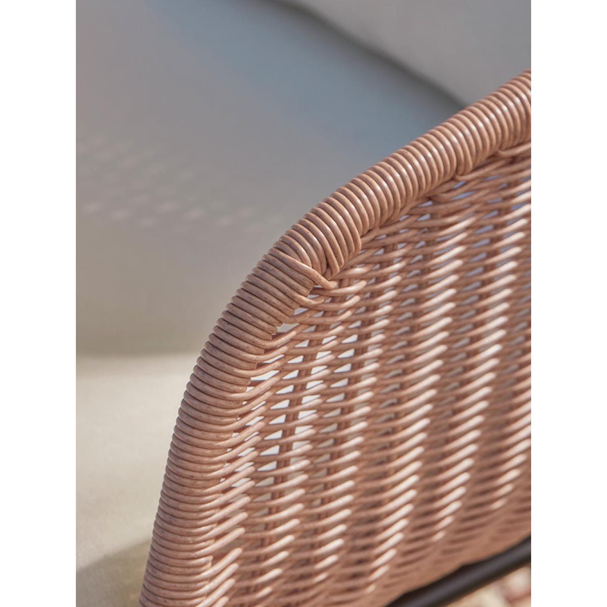 Our Noto Lounge set has a lighter contemporary silhouette inspired by traditional wicker garden furniture that will sit confidently in most outdoor settings. The multi-toned faux wicker seats offer impressive authenticity and are set on slender black legs. Additional comfort is offered through coordinating seat and back cushions which are water repellent and UV resistant. The set includes an outdoor sofa and two armchairs and a matching glass topped coffee table, making it a sociable arrangement for coffee with friends and evening drinks. Browse our useful Outdoor Furniture Buying Guide.