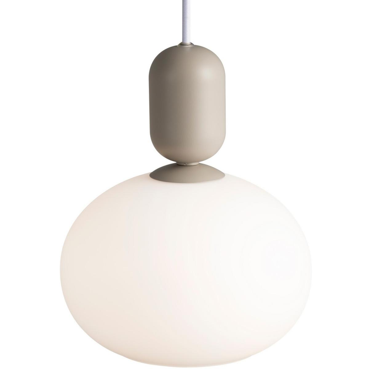 Contemporary and simple style. Organic shape. White opal mouth blown glass and matte metal, Sleek and modern the Notti Grey Dome Pendant Light will lend warm light to your space. Its organic shape and elegant style just will lend beautiful light to any setting. Its grey finish and minimalist style make it easy to integrate with existing finishes and fixtures.
