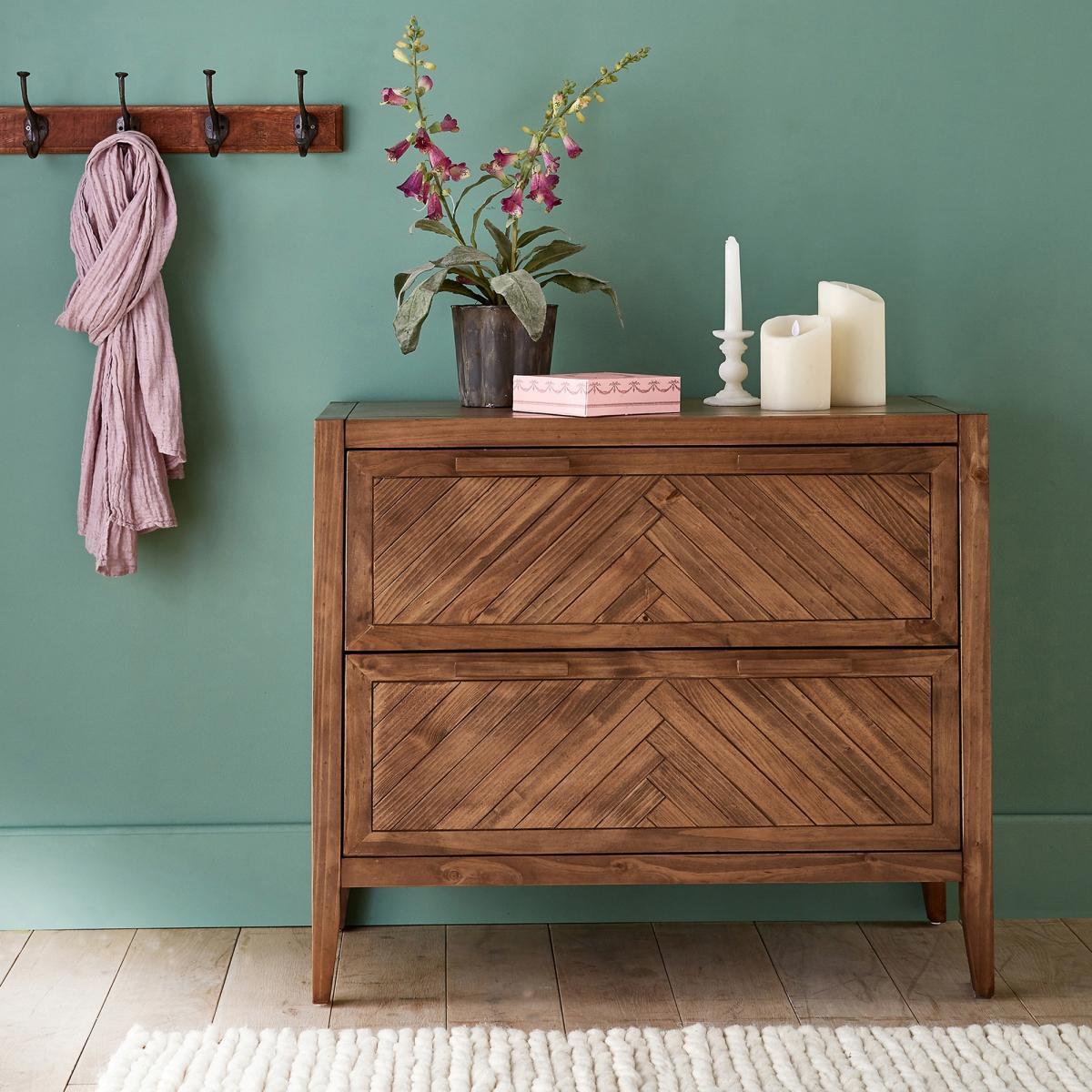 I love this little pick-up because it combines classic craftsmanship with contemporary appeal. The pine finish and parquet detailing add subtle texture and warmth, making it versatile for both traditional and modern interiors. It works particularly well in bedrooms or living spaces where you want functional storage without overwhelming the room. Practical styling tips include pairing it with neutral or muted tones to highlight its natural wood grain, or mixing it with other wooden accents for a cohesive look. Its clean lines make it easy to incorporate into various schemes, whether Scandinavian minimal, rustic charm, or even a cosy coastal vibe.