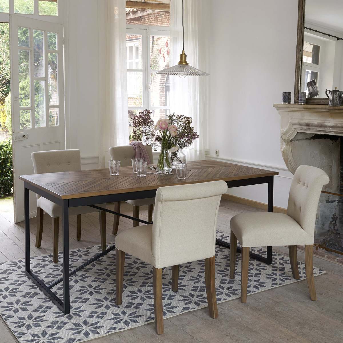 This resplendent dining table is stylishly designed with a herringbone parquet top in solid pine, and a sturdy steel base. It’s an exquisite, polished, natural piece that will instantly add style to your home. Team it up with the other items from the Nottingham range.