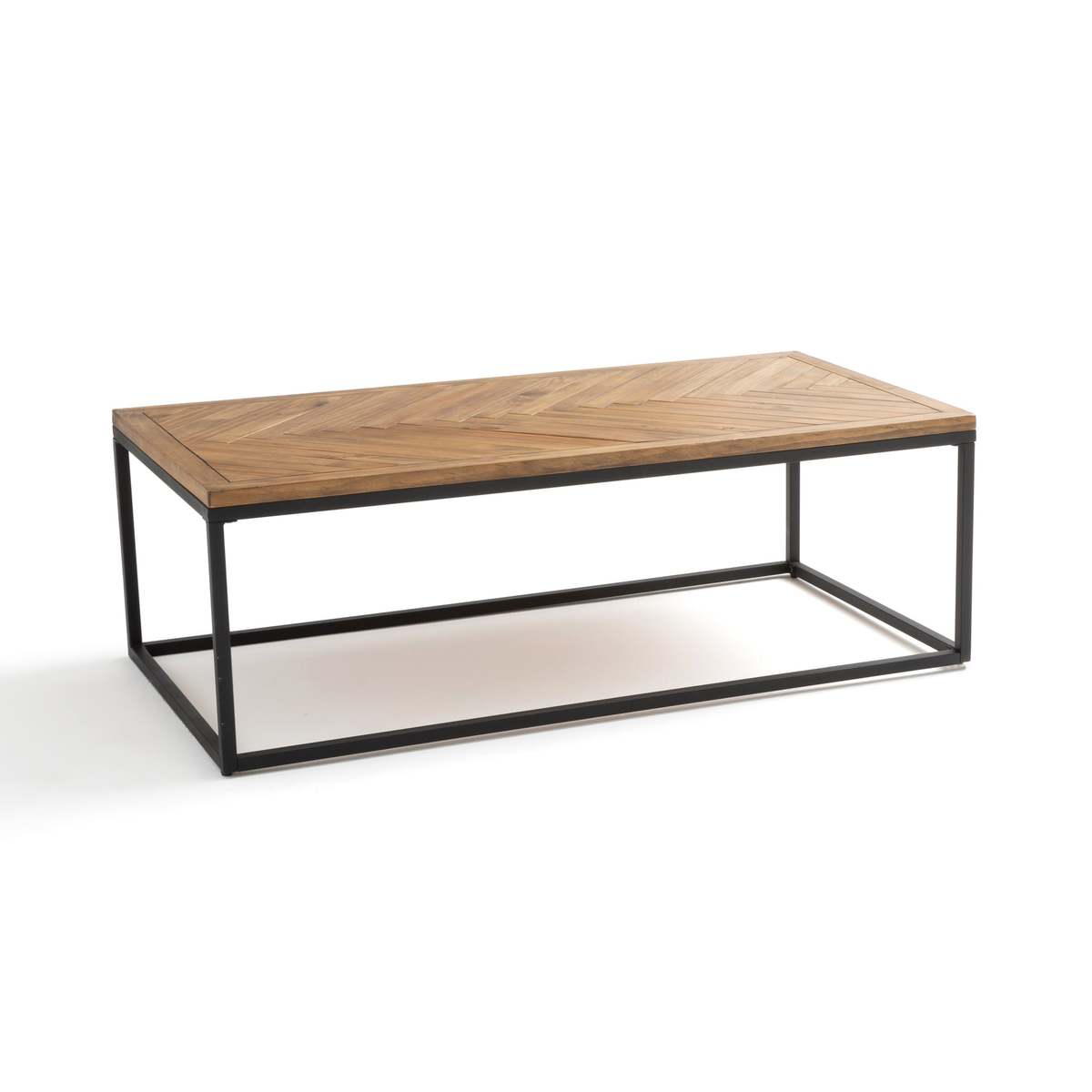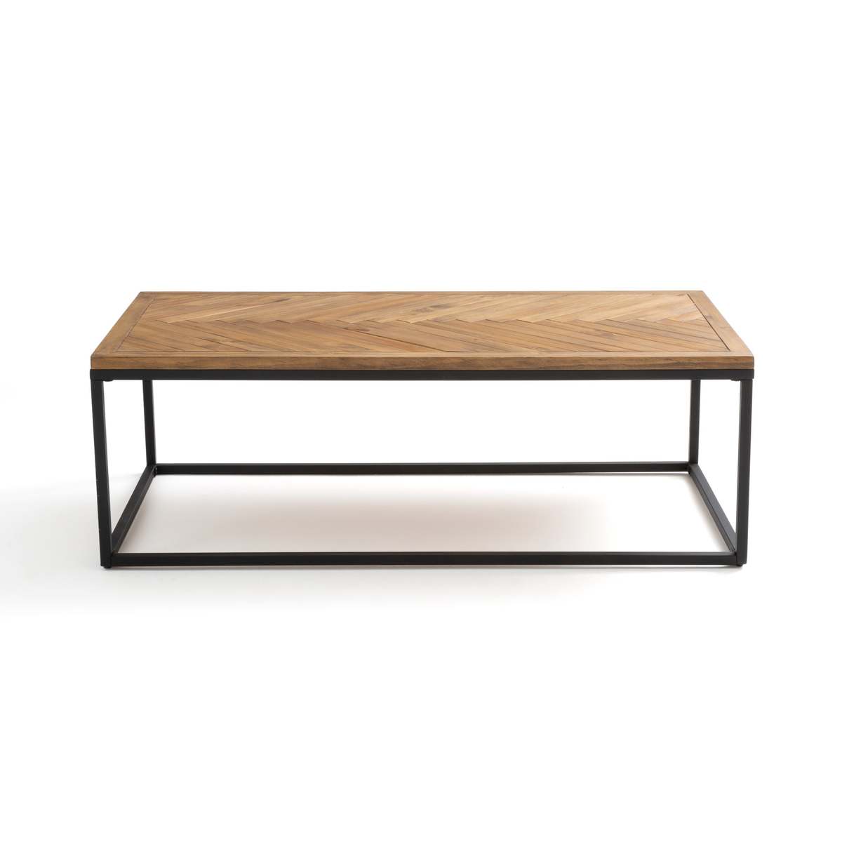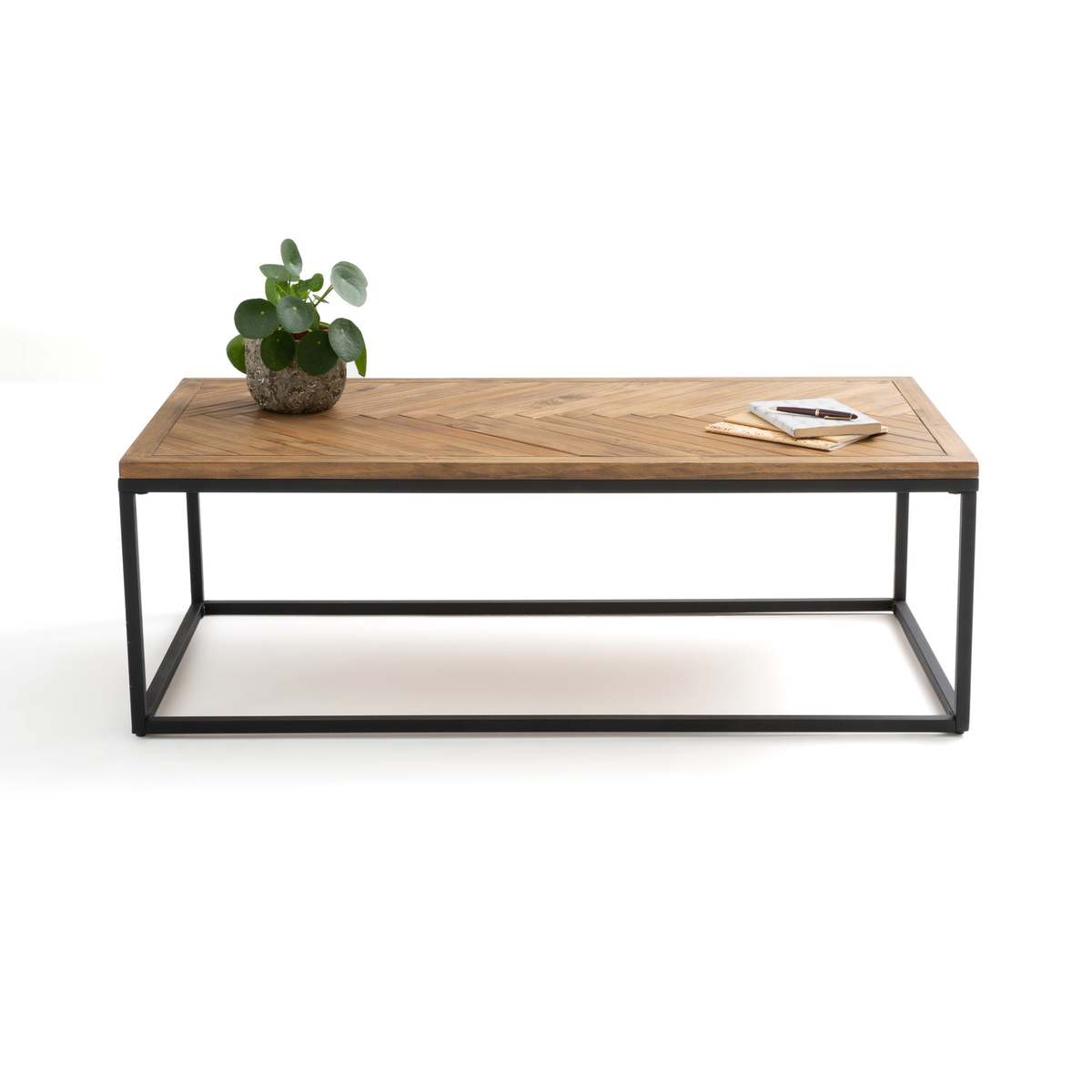 Nottingham Coffee Table in Metal & Pine Herringbone Parquet