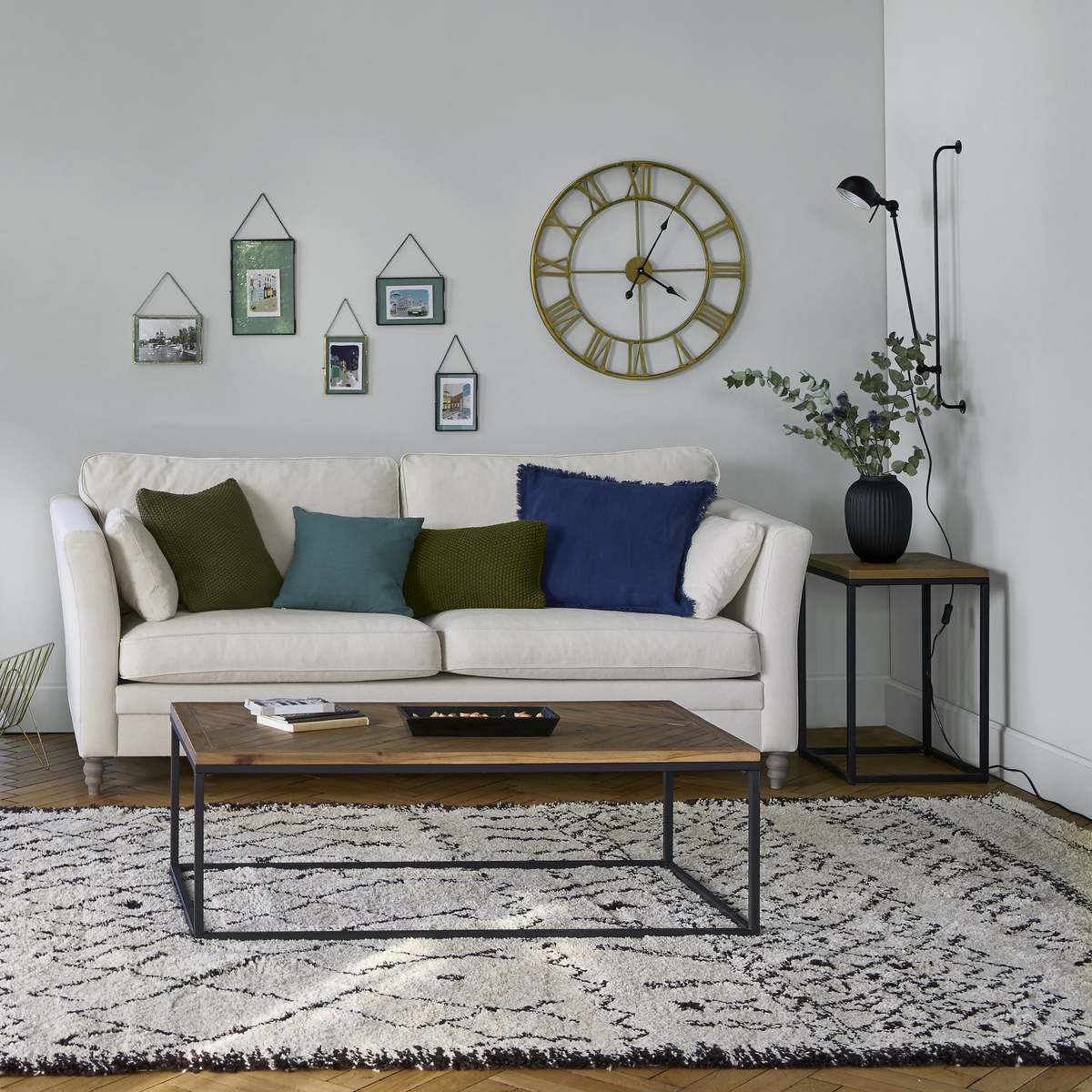 Nottingham coffee table. Elegant and contemporary, the clever mix of solid waxed pine and a sleek black frame brings a top quality feel to your living space. We love the combination of classic herringbone parquet and contemporary metal framework.