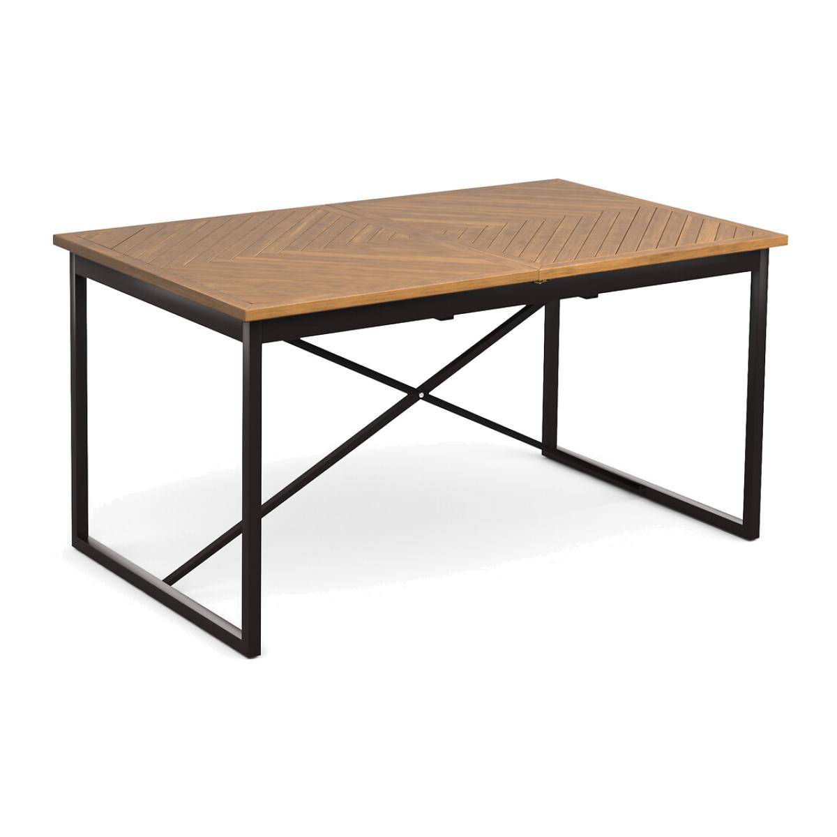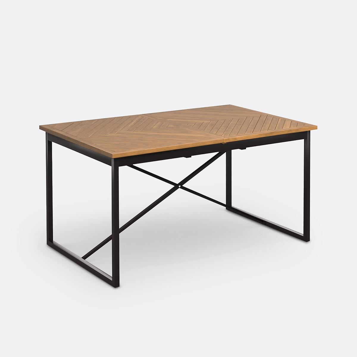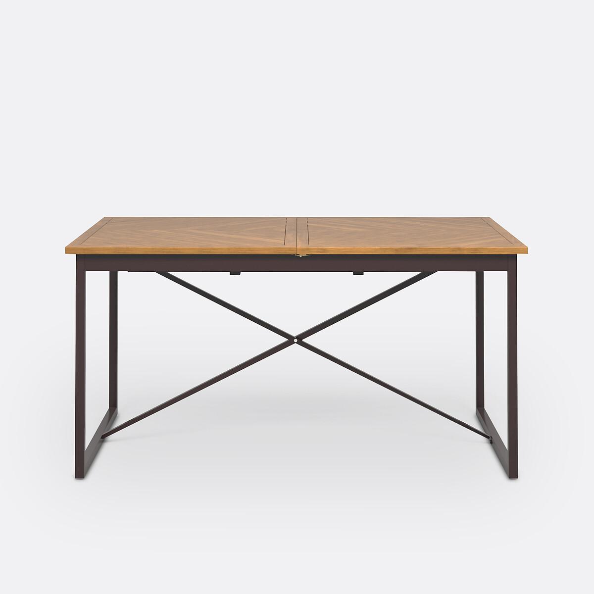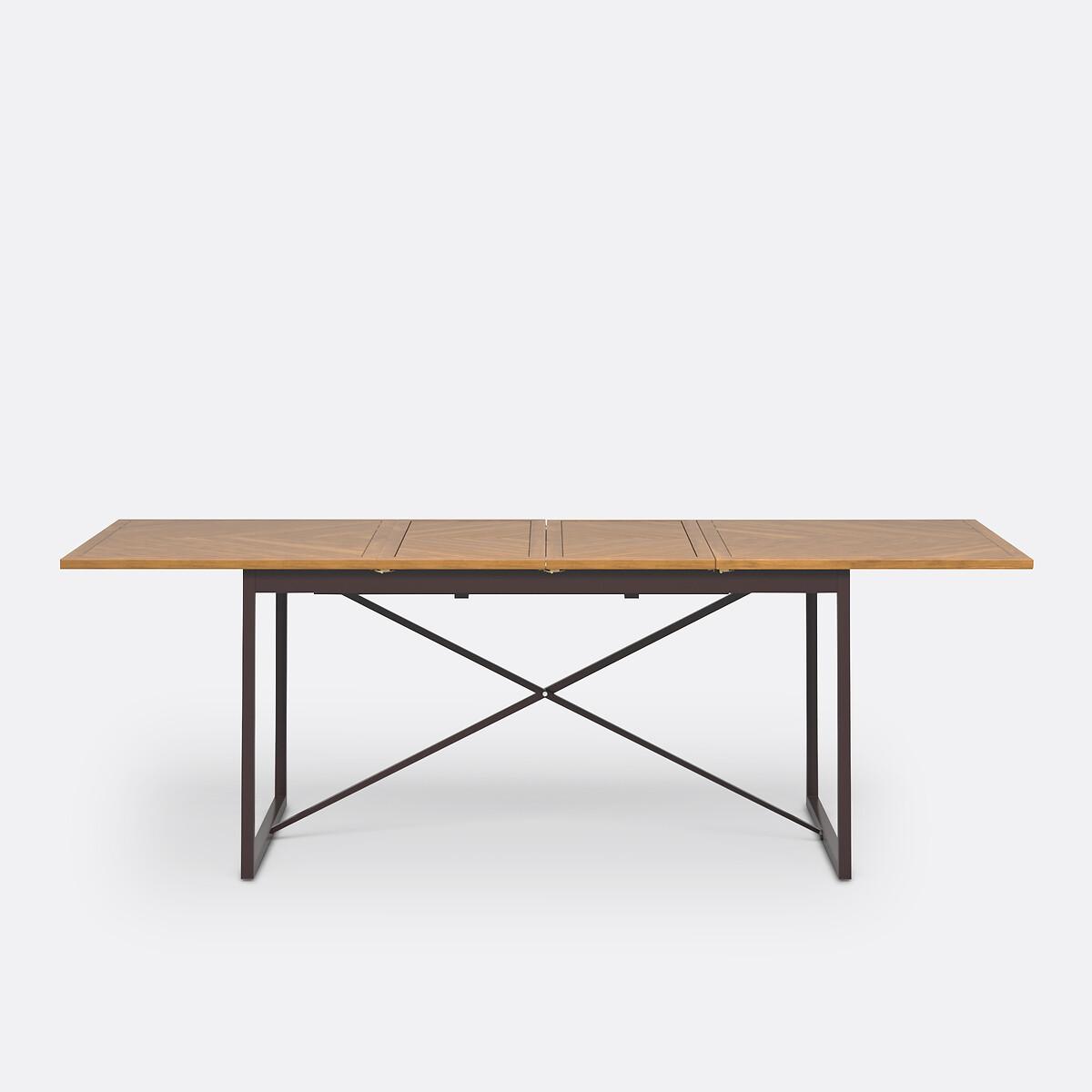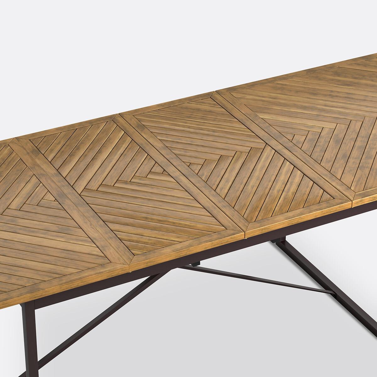 Nottingham Pine Parquet Extendable Dining Table (Seats 6-10). Bring a cool arthouse spirit to your home!Product Details • Top in solid pine chevron parquet style, nitrocellulose varnish finish • Underside of MDF top • Base: Black lacquered steel, epoxy finish • Seats 6 to 10 people • Metal ball bearing slide • The 2 extensions fit under the top for guaranteed space saving. Dimensions • Lengths :150cm: without extension190cm : 1 extension230cm : 2 extensions • Height: 75cm • Depth: 90cm • Dimensions. of 1 extension: 40cm • Space between legs: 138cm. Home Delivery. Requires self-assembly. Parcel dimensions and weight1 parcel • L153 x H17 x D94cm • 50kg
