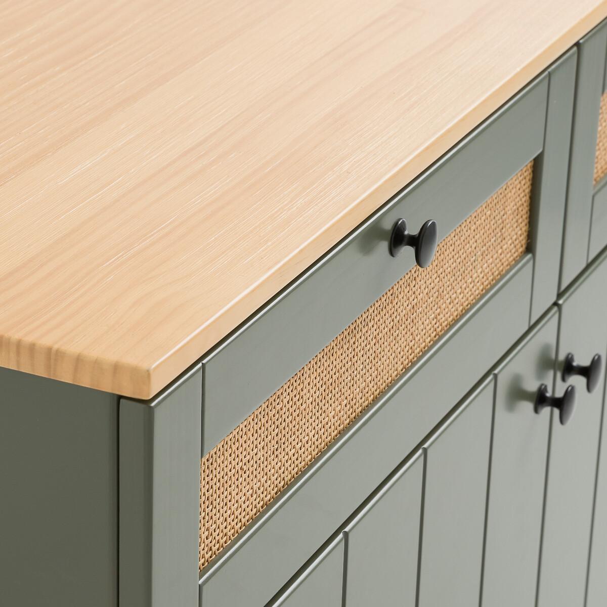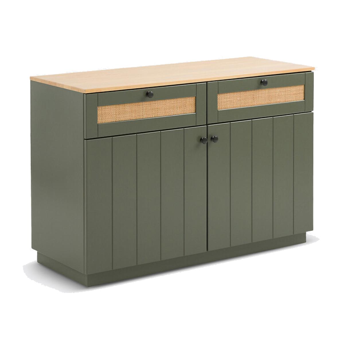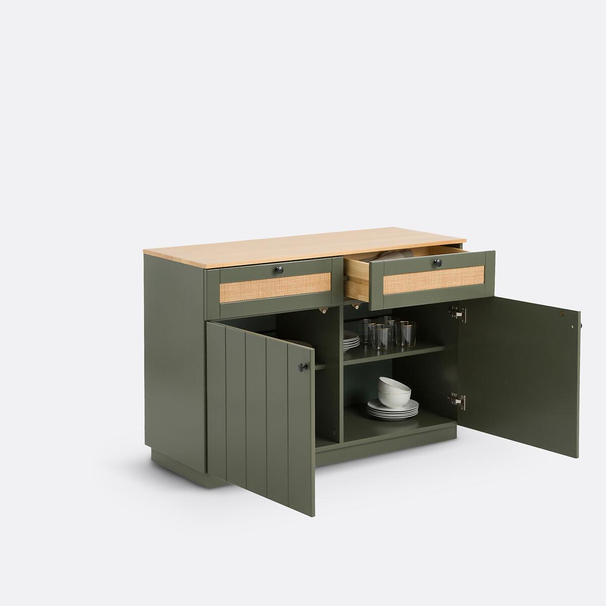 Made from FSC® certified solid pine and coloured MDF, the Nourry sideboard evokes the charm of life in country houses. It offers handy storage space, with its two drawers and two doors. Created by La Redoute Interiors. Product Details • Painted MDF unit and solid FSC® pine door with acrylic finish • Top of the sideboard in solid FSC® pine with acrylic finish • Drawers with cane decoration • Black zinc alloy handles • Removable shelves, adjustable in height. Dimensions • Width: 120cm • Height: 81cm • Depth: 47.5cm. Delivery: • Assembly required. Available for home delivery. Note! Please check that all access points are large enough to accommodate your delivery (doors, stairs, lifts). • WOOD FROM SUSTAINABLY MANAGED FORESTS. FSC® certified wood comes from forests that are environmentally, socially and economically well managed. Dimensions and weight of parcel2 parcels • L84 x H20 x D64.6cm. 31.9kg • L132 x H12 x D56cm. 24.50kg