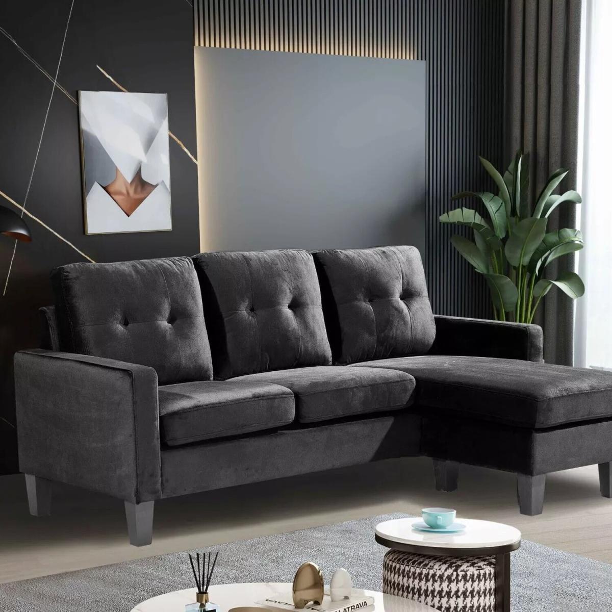 I love this black corner sofa for its versatile and contemporary appeal, making it a staple in both modern and more eclectic interiors. Its convertible feature adds practicality, especially for those living in open-plan spaces or hosting guests. The dark colour works well as a neutral base, pairing easily with bold or muted coloured accessories, textured throws, or patterned cushions to lift the overall look. For styling tips, consider placing it against a lighter or textured wall to add contrast, and accessorise with a mix of plush cushions and throws to invite comfort. It pairs nicely with sleek, minimalist coffee tables or layered rugs to create a cosy yet polished living space.