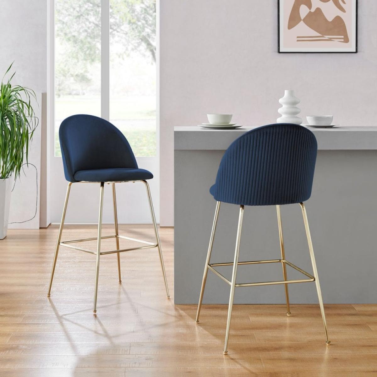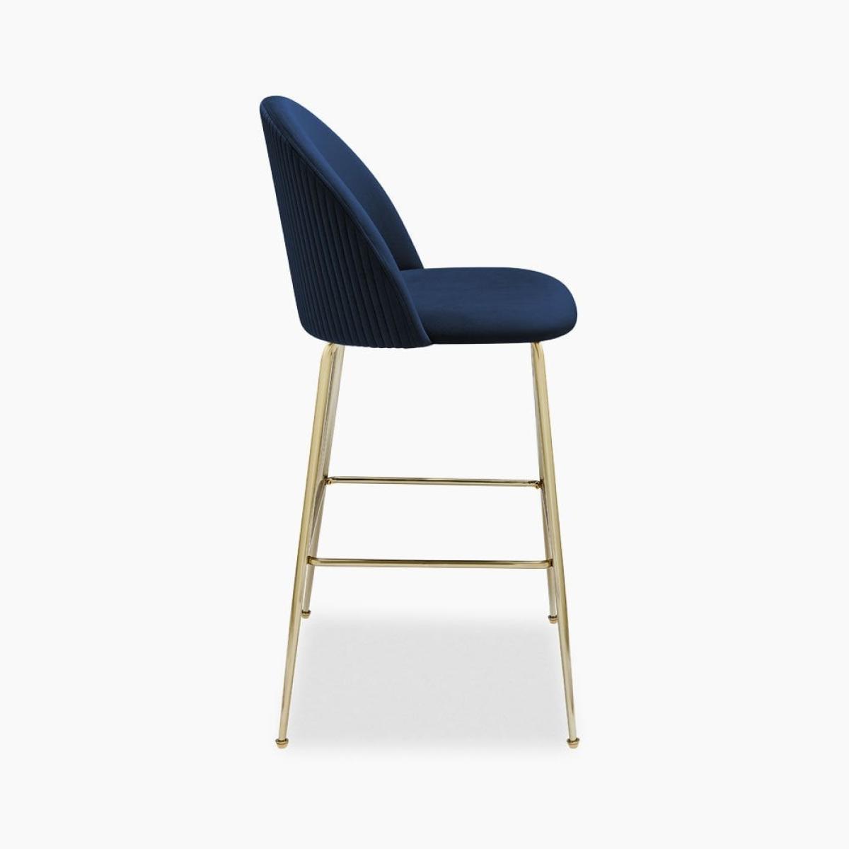 Nova Bar Stool, Royal Blue Recycled Velvet Leg Colour: Brass