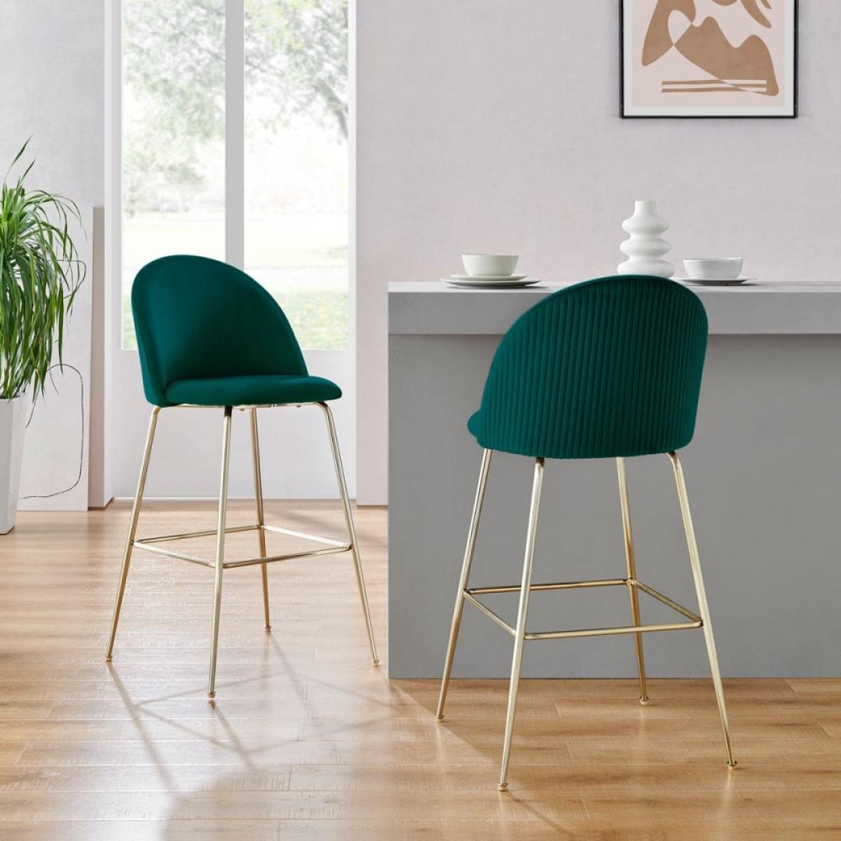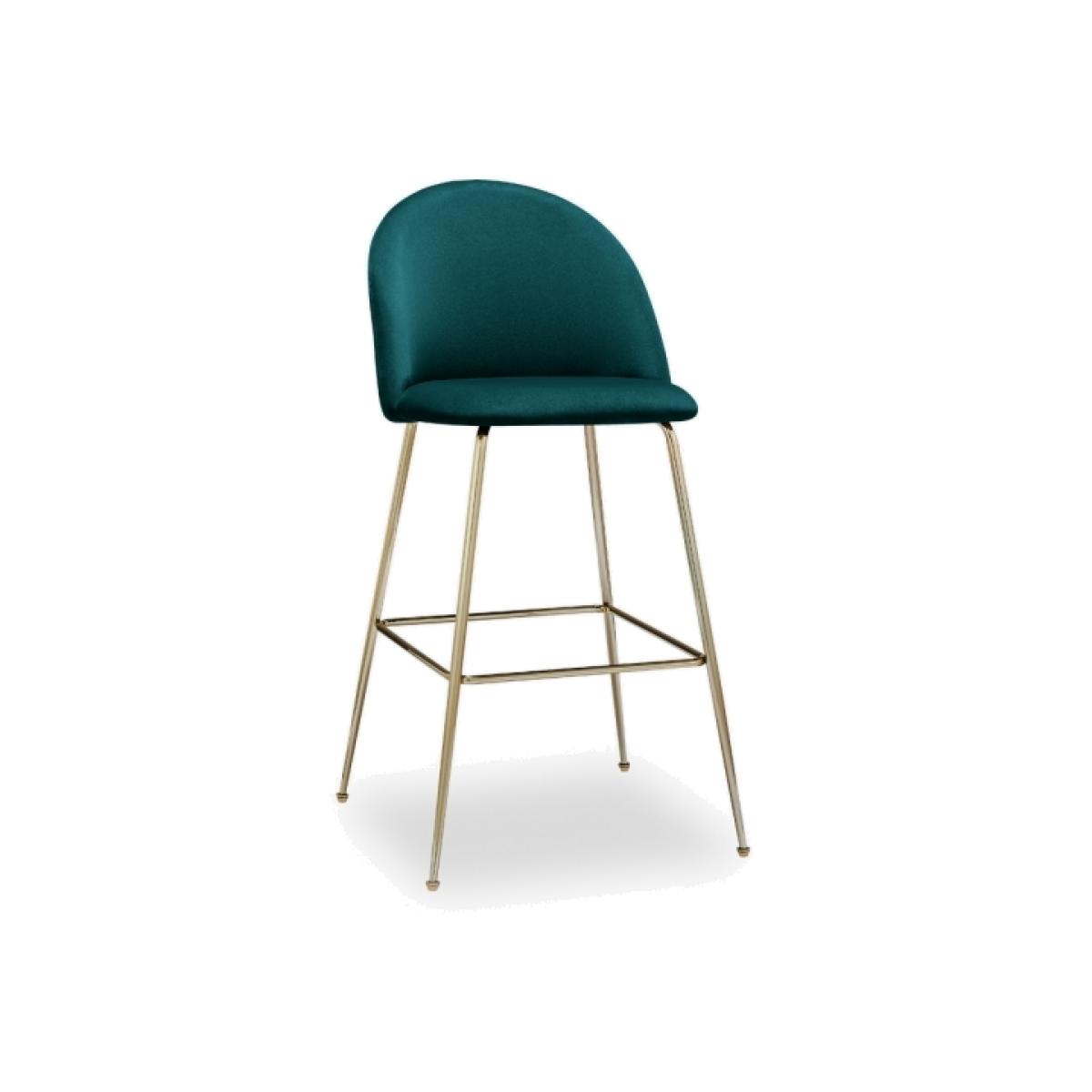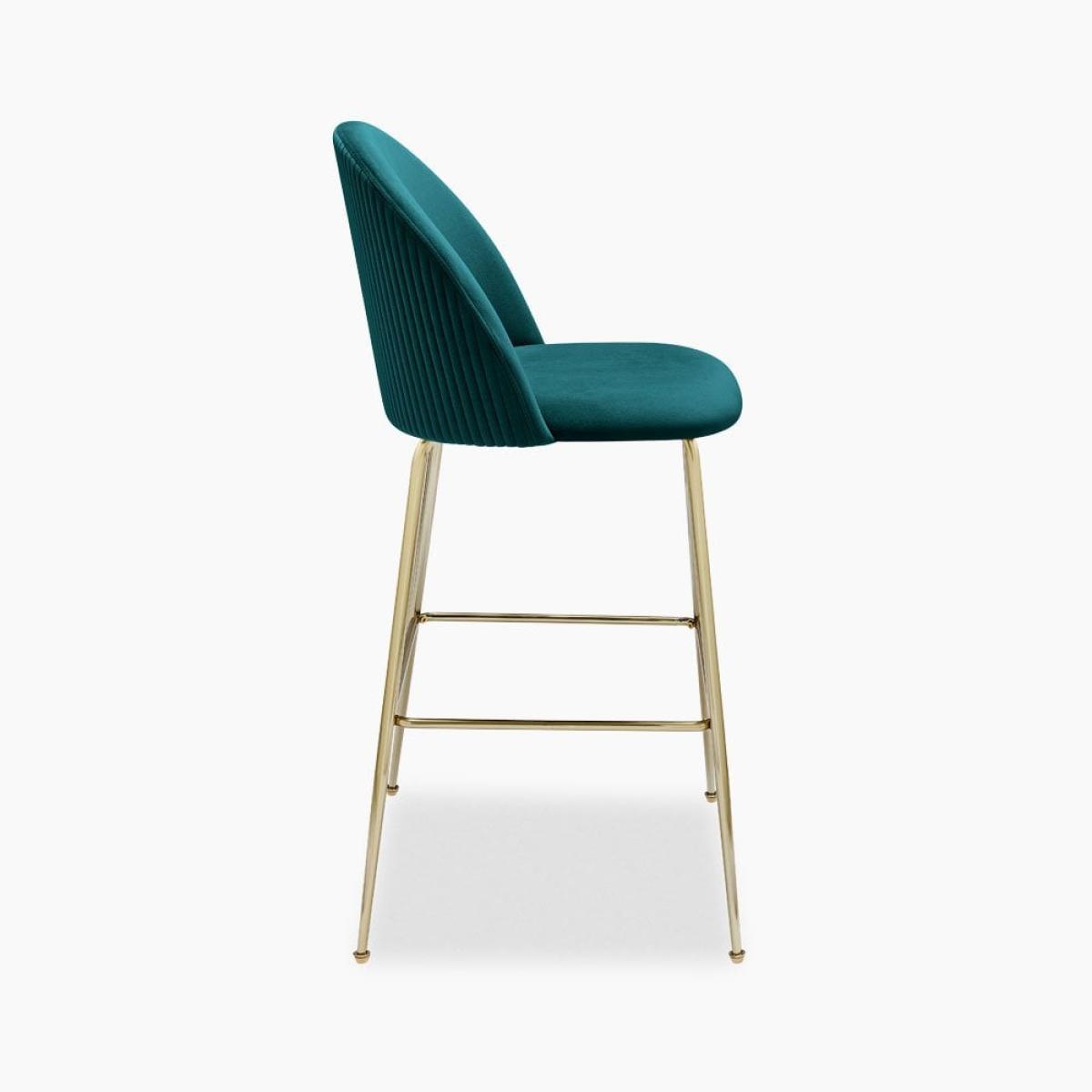 Nova Bar Stool, Teal Recycled Velvet Leg Colour: Brass
