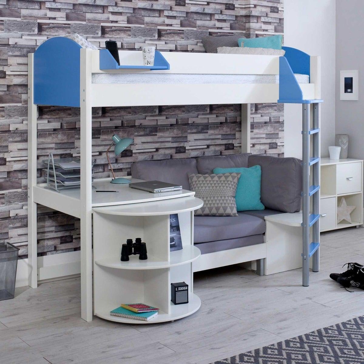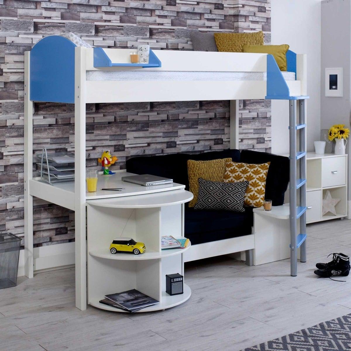 Nova D Children's Highsleeper Bed with pull out Desk & Futon, Blue Wood | Barker & Stonehouse