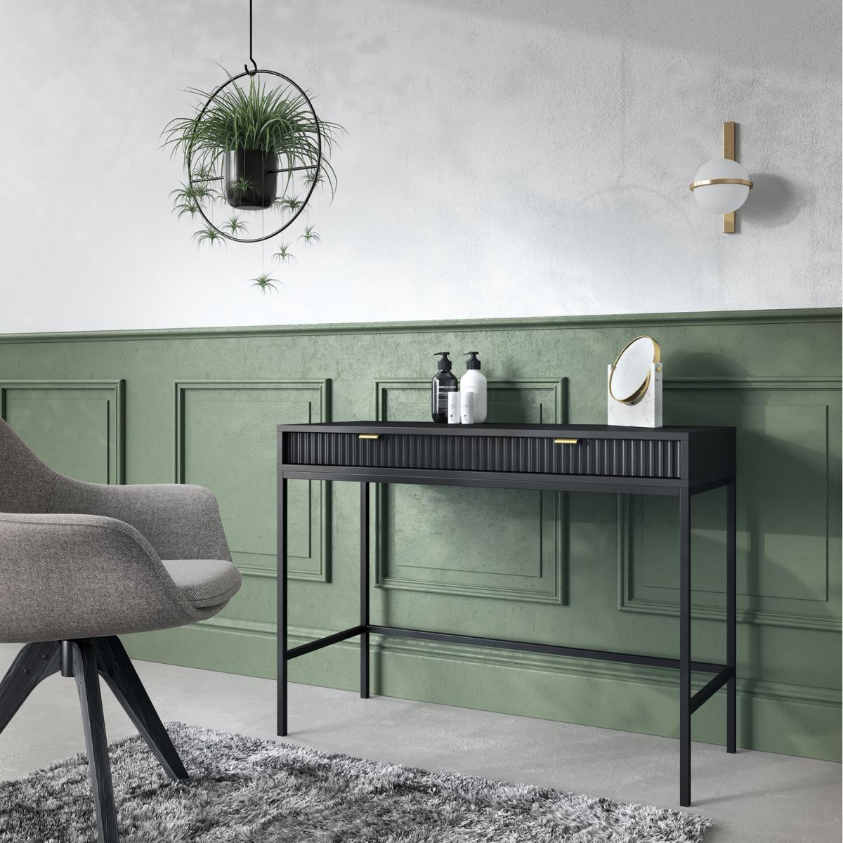 The Nova Dressing Table in black is a sleek, contemporary piece that’s perfect for modern interiors. Its minimalist design and clean lines allow it to seamlessly integrate into both urban apartments and more styled, eclectic spaces. I love how versatile it is - it works well in bedrooms with Scandi, industrial, or even glam decor, provided you keep the surrounding accessories simple. Practical styling tips include adding a large mirror to maximise space and light, and incorporating organisational trays or small drawers for skincare and jewellery. Pairing it with matte black or metallic accents can enhance its sleek look, while a few colourful or textured accessories, like a soft velvet stool or decorative tray, can add personality without overpowering the minimalist vibe.