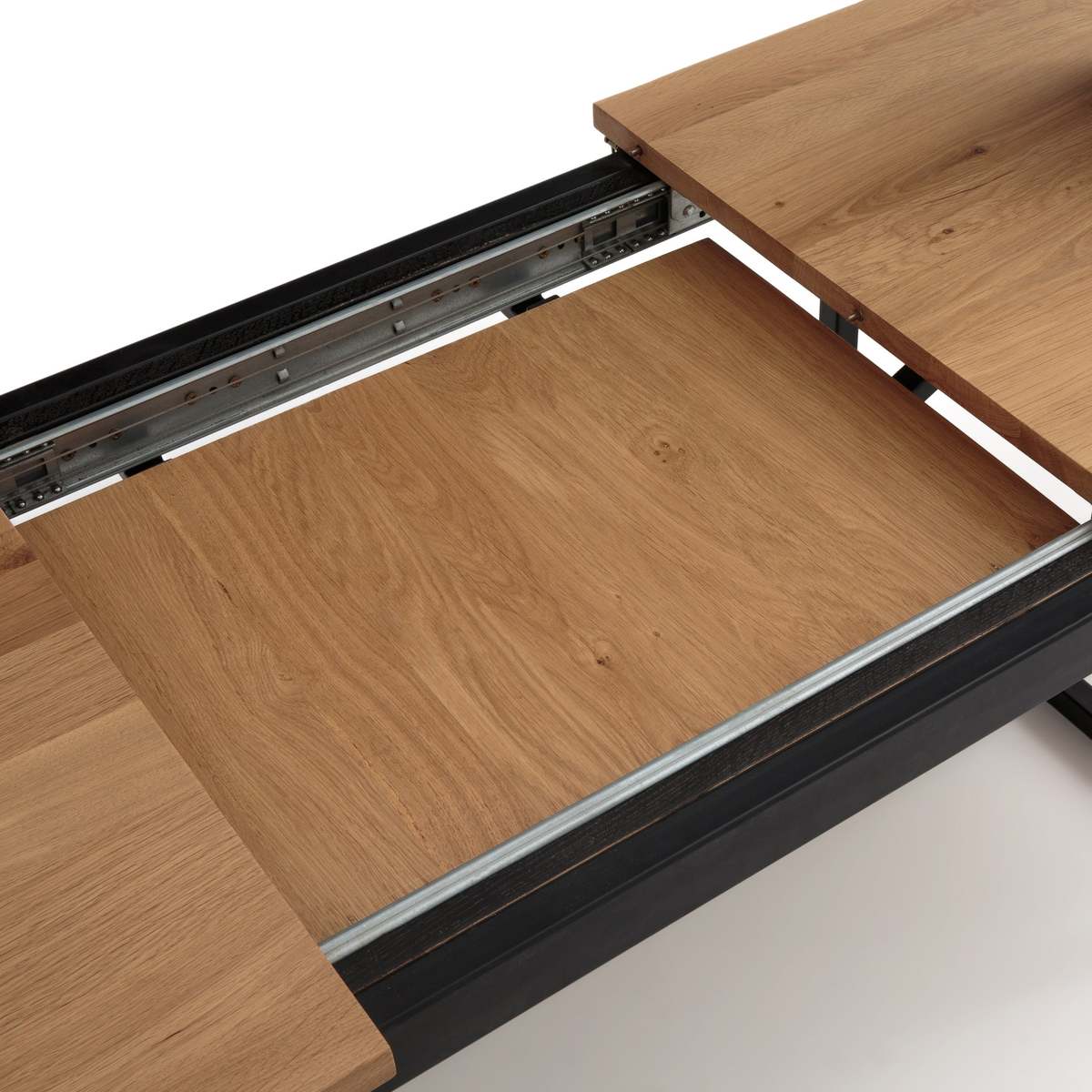 I love this table for its versatile and practical design. Its extendable feature makes it perfect for both cosy evenings and larger gatherings, offering flexibility in smaller and open-plan spaces. The oak top adds warmth and texture, making it ideal for contemporary, Scandinavian, or industrial interiors, especially when paired with neutral tones or minimalist decor. To style around it, consider layering with textured rugs and adding oversized lamps or tray setups on the table for a functional yet styled look. Its clean lines and mix of natural wood with metal make it an easy anchor that can adapt to a variety of aesthetic preferences.