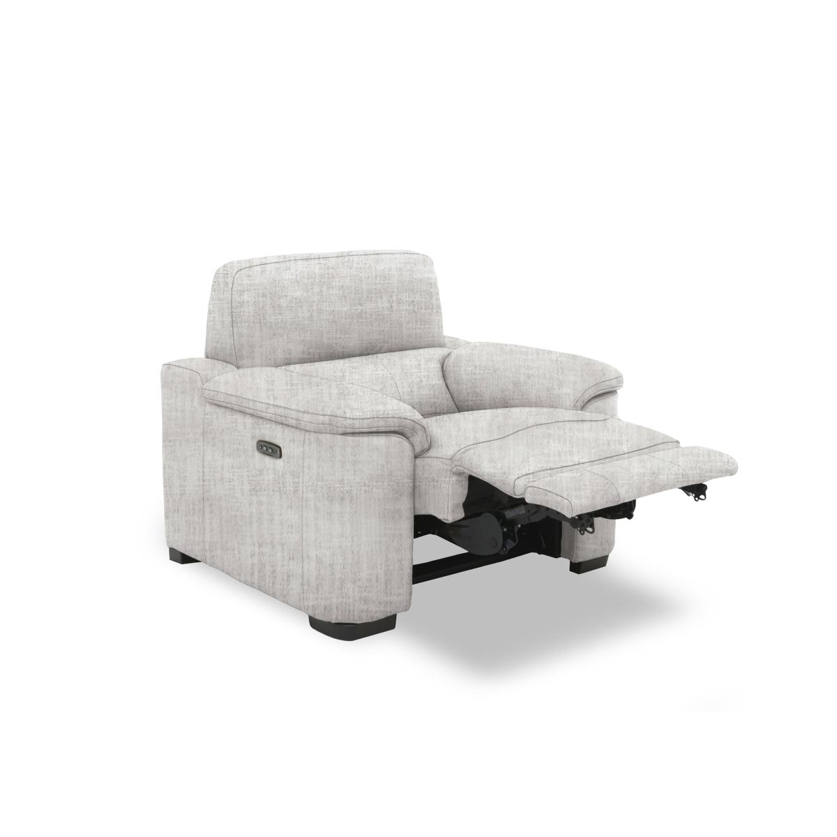 With a power recliner, a power headrest and a sprung seat and back, our modern Nova armchair promises effortless relaxation with the most stylish of sumptuously cushioned curves. Why you’ll love it Our Nova power armchair is a whole new way to unwind – in style. Relaxation is effortless with the super-smooth, touch-control power recliner. A perfect-positioning headrest make it so easy to fine-tune your comfort. Sprung seat and back for perfectly balanced support across the entire sofa. Smooth curves and sumptuous cushioning enhance the experience. You’re automatically upgraded to a superior foam and coil spring seat cushion. Relax even more with built-in USB phone and tablet charging. In a huge choice of fabric styles and colours for the high-quality upholstery. Also available in 100% leather upholstery. Handcrafted for Furniture Village. This power armchair is part of our Nova range. What you need to know Medium comfort level. Seat suspension: no-sag springs. Seat cushioning: foam and inner coil. Cushioning is fixed. Back suspension: rubber webbing. Back cushioning: foam and loose fibre. Cushioning is fixed. Arm cushioning: foam and fibre. Removable backs. Please allow time for new recliners to ease. Minor gaps are necessary to ensure ease of recliner motion and may be exaggerated depending on floor type. Flattening and shading of heavy wear areas on pile fabrics is unavoidable. Clean regularly using a soft brush or vacuum with the curtain attachment. Deal with any spills promptly. Professional cleaning advised for oil- and grease-based stains. Please read our upholstery care guide for more advice. Item code: NOVACHPHLUX-008