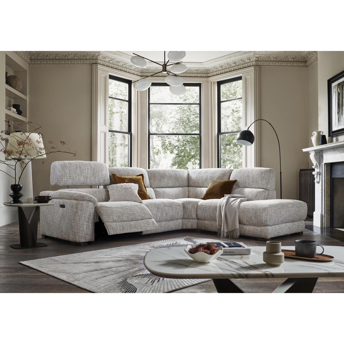 With power recliners, power headrests and a sprung seat and back, our modern Nova chaise end sofa promises effortless relaxation with the most stylish of sumptuously cushioned curves. Why you’ll love it Our Nova chaise end power sofa is a whole new way to unwind – in style. Relaxation is effortless with super-smooth, touch-control power recliners. Perfect-positioning headrests make it so easy to fine-tune your comfort. Sprung seat and back for perfectly balanced support across the entire sofa. Smooth curves and sumptuous cushioning enhance the experience. You’re automatically upgraded to superior foam and coil spring seat cushions. Relax even more with built-in USB phone and tablet charging. In a huge choice of fabric styles and colours for the high-quality upholstery. Also available in 100% leather upholstery. Handcrafted for Furniture Village. This chaise end power recliner sofa is part of our Nova range. What you need to know Medium comfort level. Seat suspension: no-sag springs. Seat cushioning: foam and inner coil. Cushioning is fixed. Back suspension: rubber webbing. Back cushioning: foam and loose fibre. Cushioning is fixed. Arm cushioning: foam and fibre. Removable backs. Please allow time for new recliners to ease. Minor gaps are necessary to ensure ease of recliner motion and may be exaggerated depending on floor type. Flattening and shading of heavy wear areas on pile fabrics is unavoidable. Clean regularly using a soft brush or vacuum with the curtain attachment. Deal with any spills promptly. Professional cleaning advised for oil- and grease-based stains. Please read our upholstery care guide for more advice. Item code: NOVALCUPLUX-025