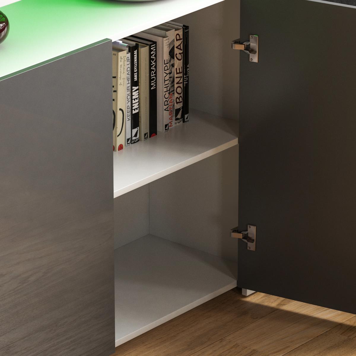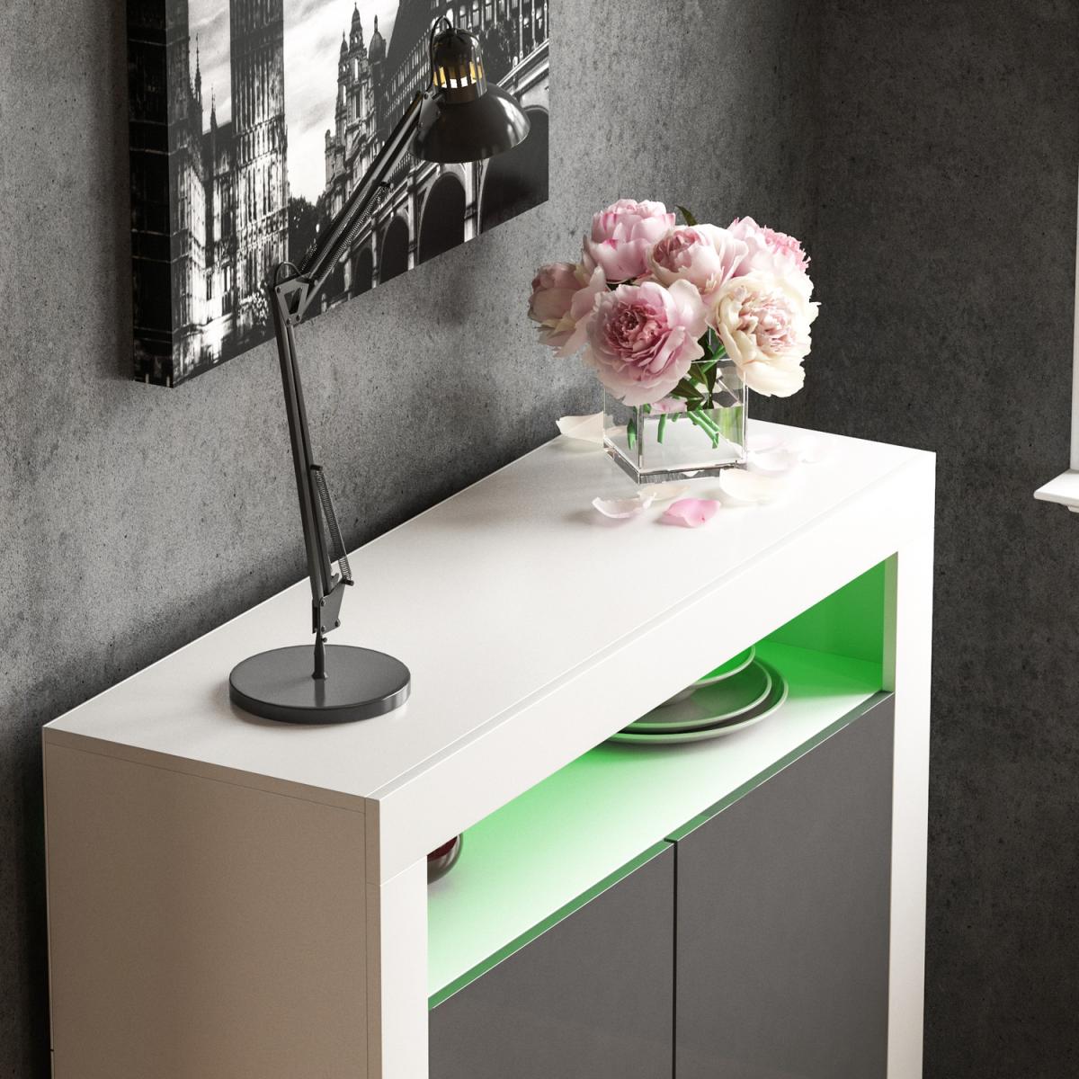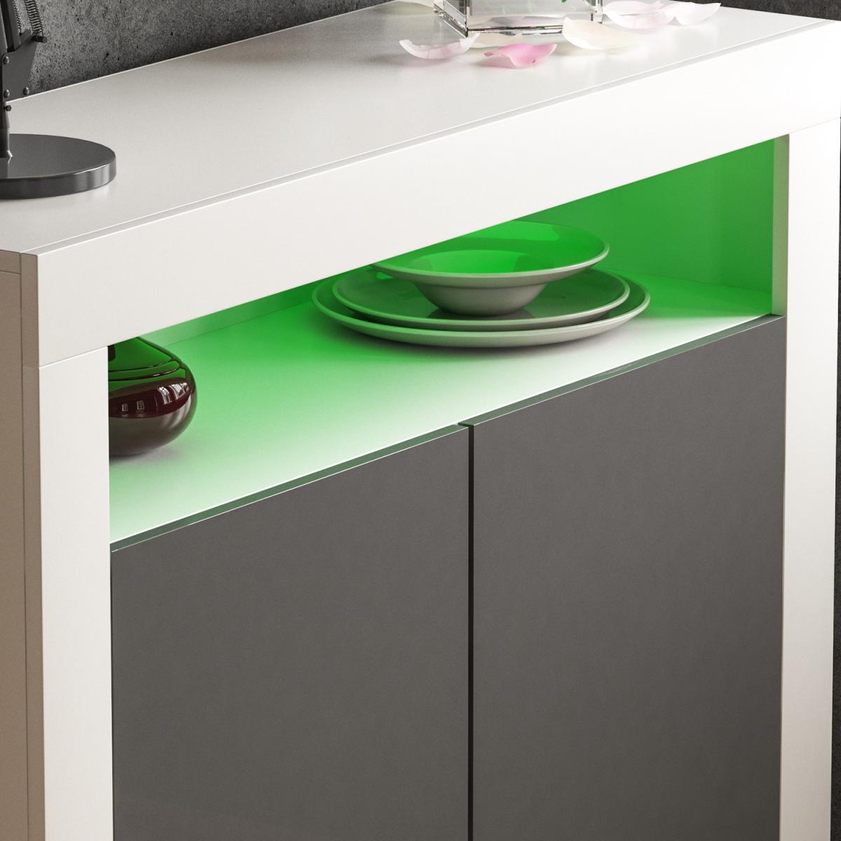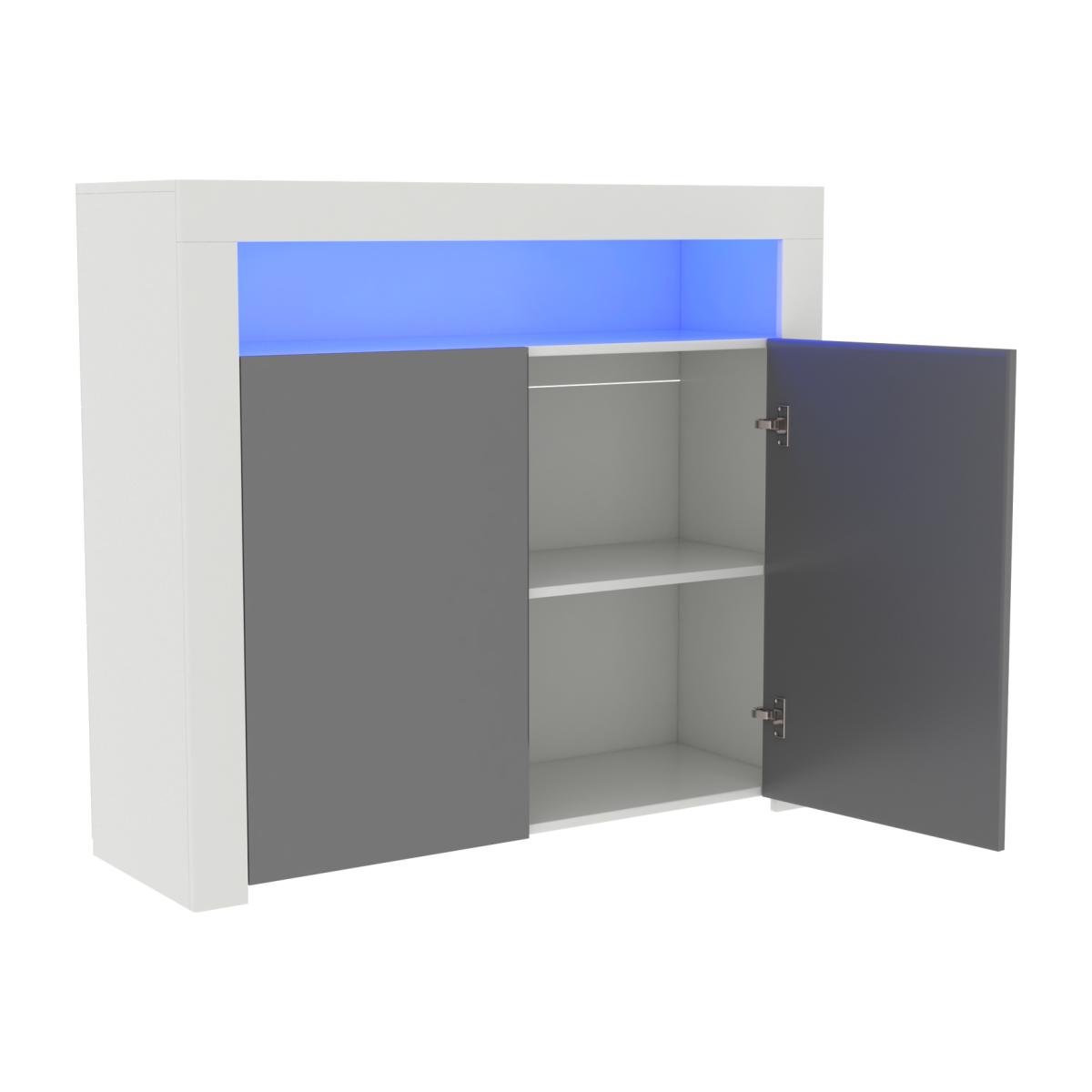 This sleek and stylish Nova Sideboard will make an excellent addition to your home no matter what your decor style is. With the contrast of the matte sides and high gloss doors and the colour-changing LED lights, this sideboard will make a real statement and be the perfect piece of living room furniture to complete your space. When placed in a bedroom, it could even be used as a nightlight for children who struggle to sleep without a light on.