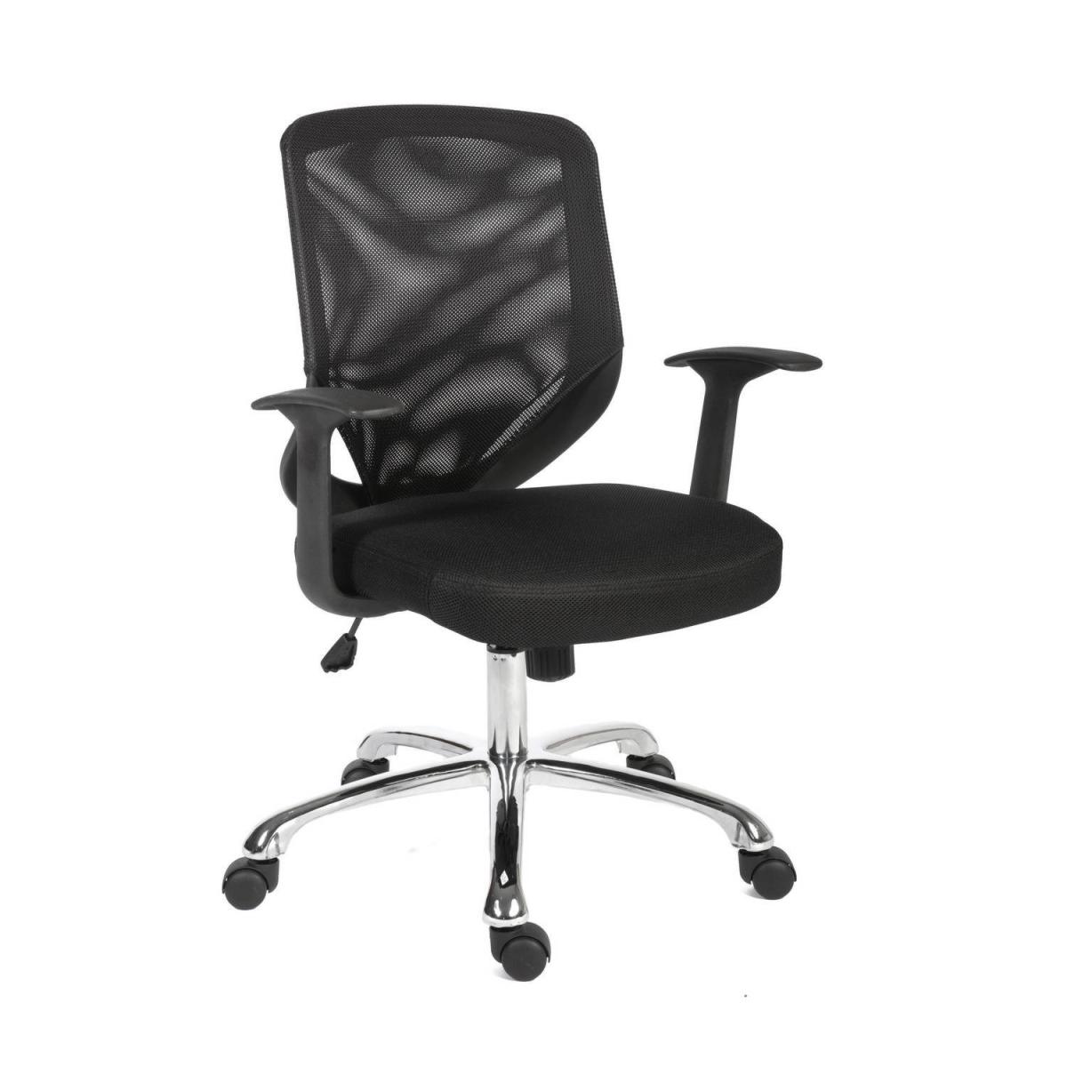 This Nova Mesh Executive Chair was designed with your comfort in mind. It features a durable fabric seat, sturdy armrests and a mesh back that is ideal for keeping your back cool while offering lumbar support from its curvature design. The seat rests central on a metal constructed leg with five casters, making it easy to move around on a variety of carpet textures and wooden flooring. The convenient gas lift height adjustment mechanism makes it easy to alter the stature of the seat to how you wish and you can recline the back slightly with a simple push of a lever, creating the perfect chair for everyday use.